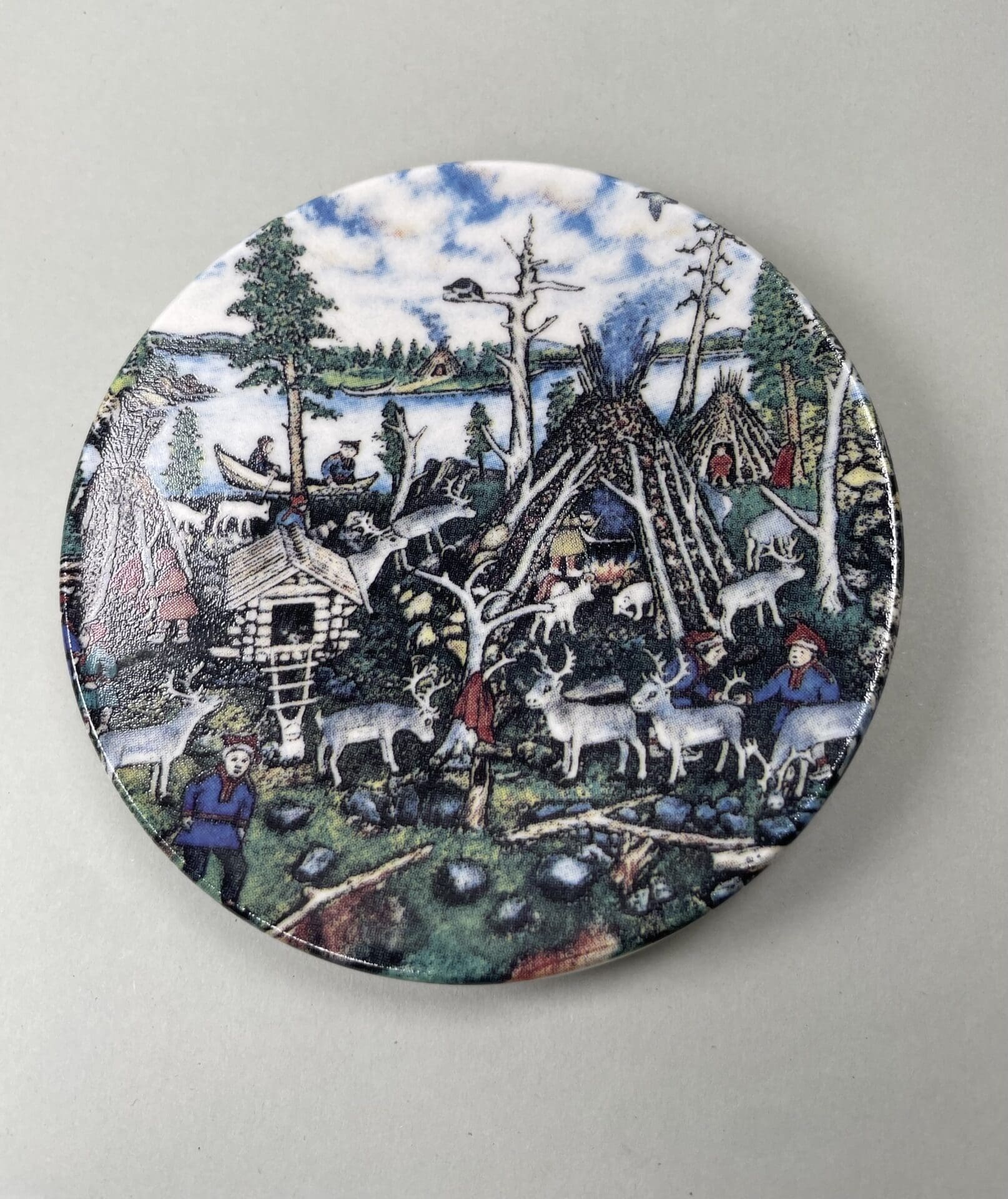 Andreas Alariesto wallplate number 44. Lapp village in summer. In good condition. 12cm in diameter.