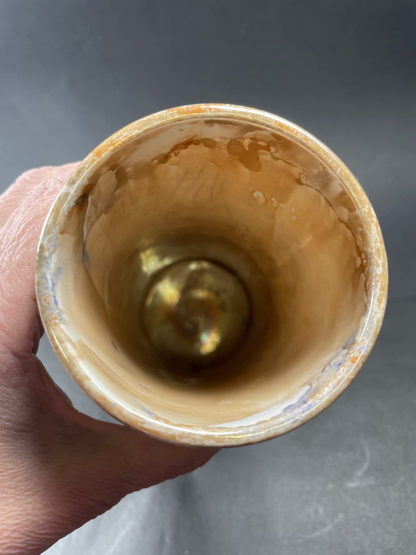 Arabia 21cm art deco vase. Metal oxide stencil decoration. First time introduced in the Paris World Fair in 1900. Good condition, some cracking on the glaze. The stamp dates the vase during 1917-1927. The method was developed by Arabia manager Gustav Herliz and Thure Öberg.