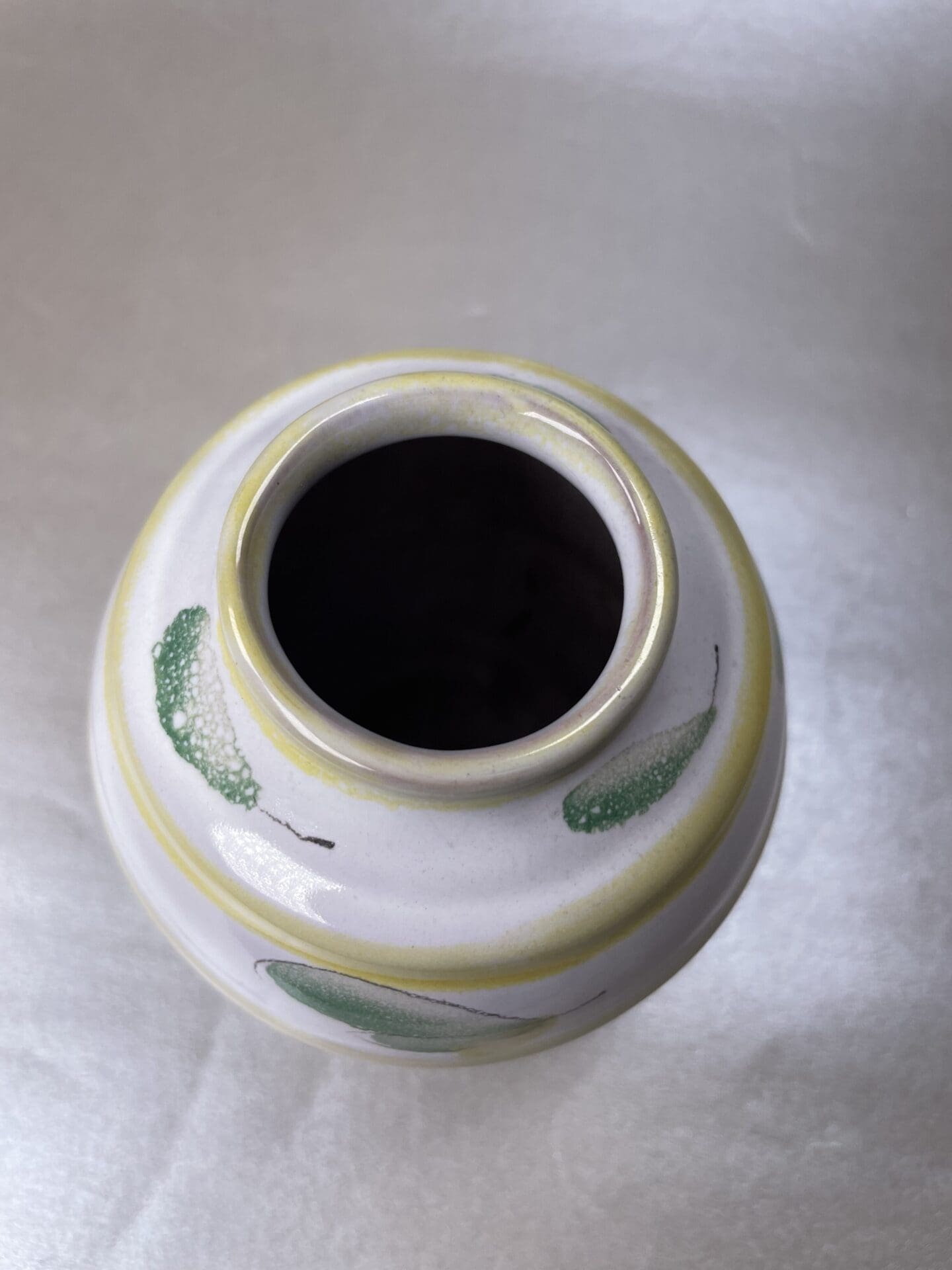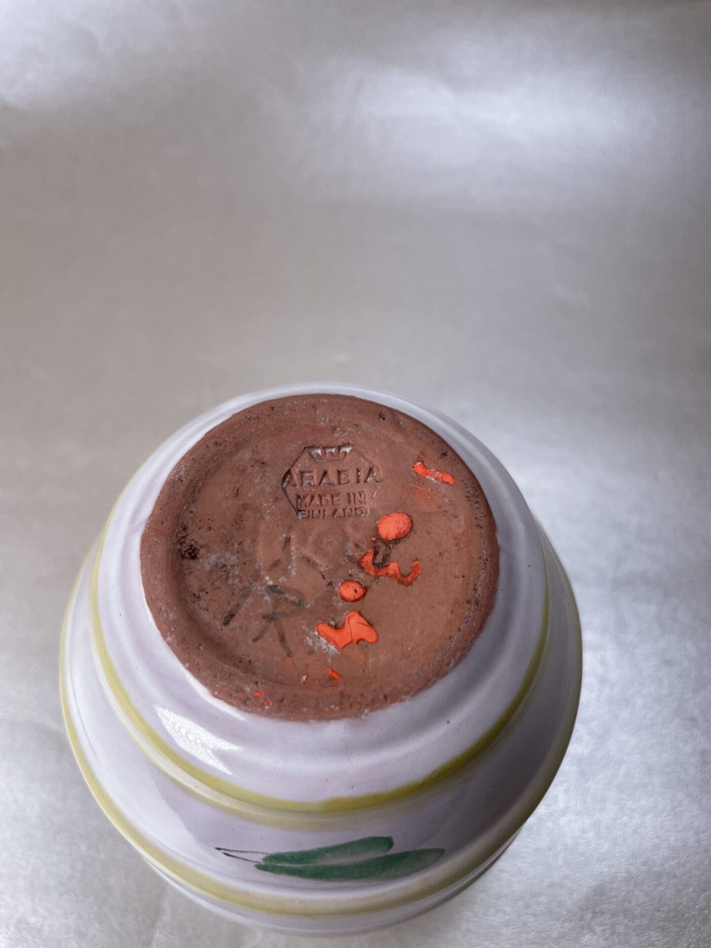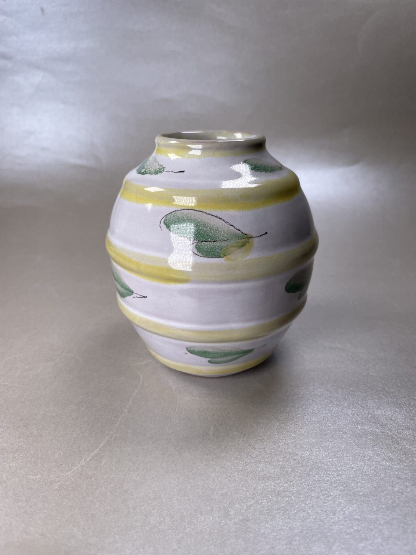 Arabia Beehive vase 13cm yellow stripe. Good condition. Designer Kurt Ekholm.