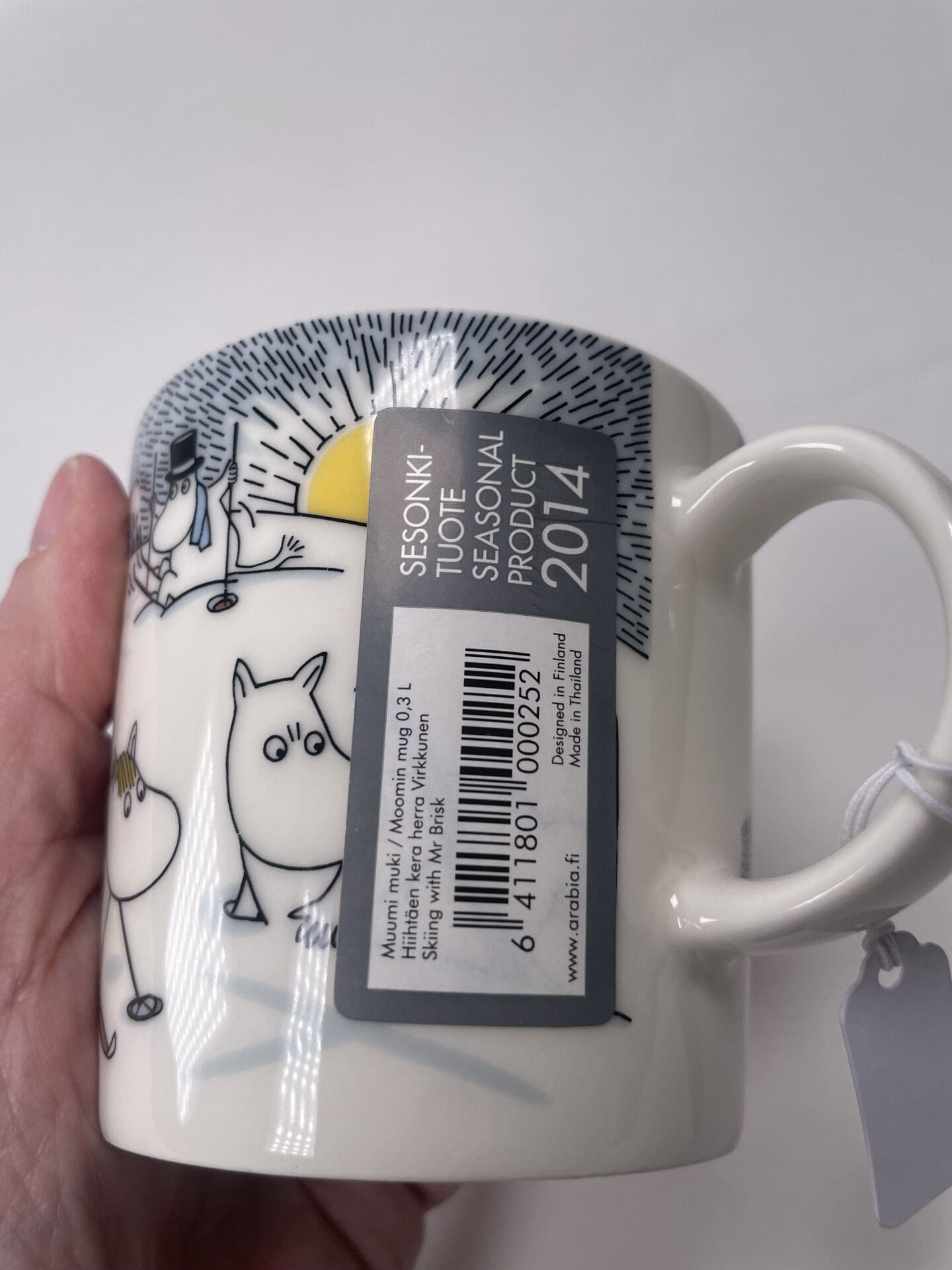 Arabia Moomin mug Skiing with Mr Brisk in good condition. Was in production 2014-15. With sticker.