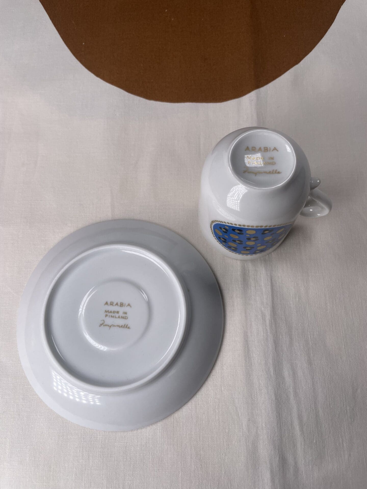 Arabia Pimpinella Mocca Cup Blue. Pattern by Anja Jaatinen-Winquist. Good condition.