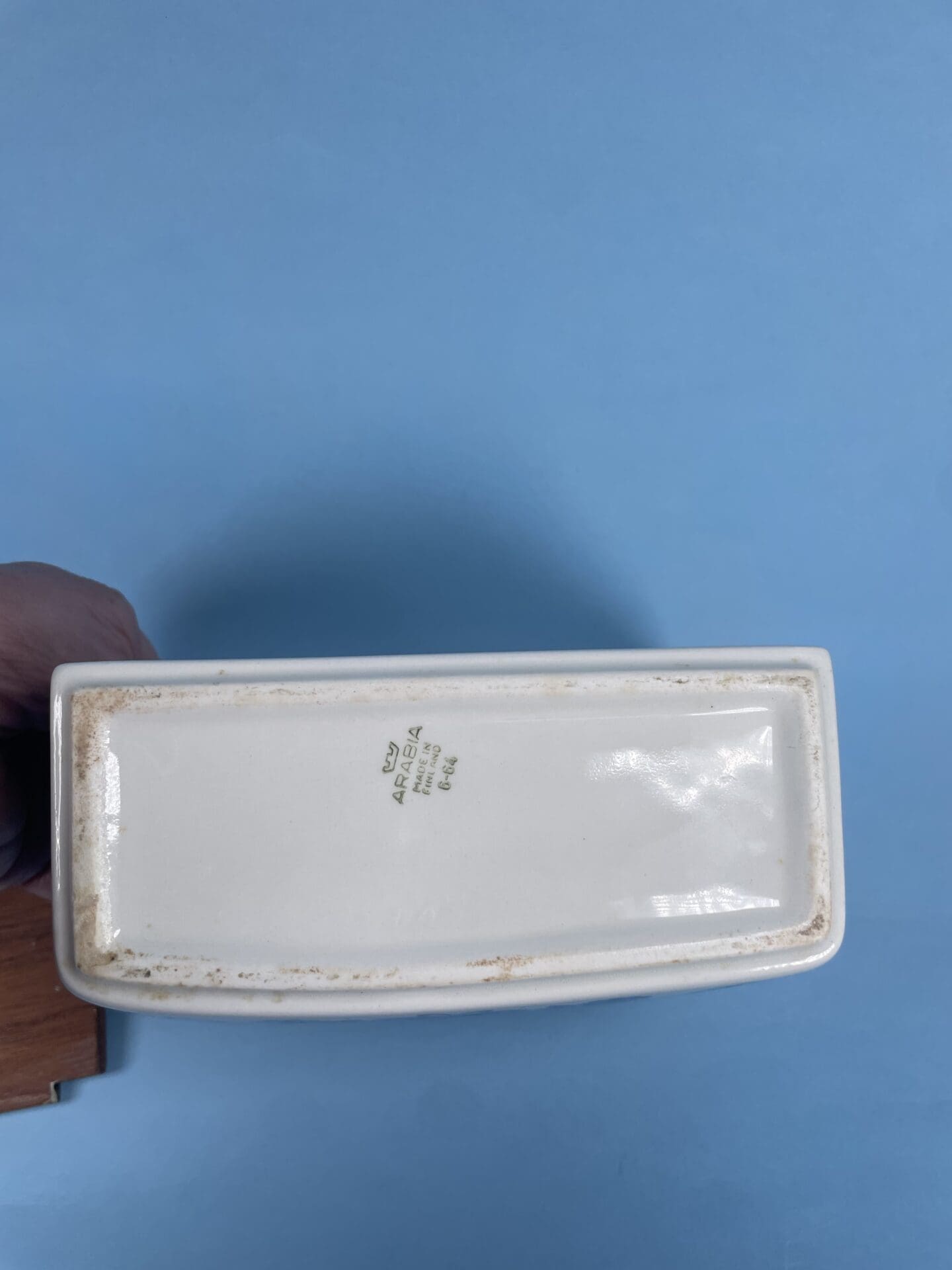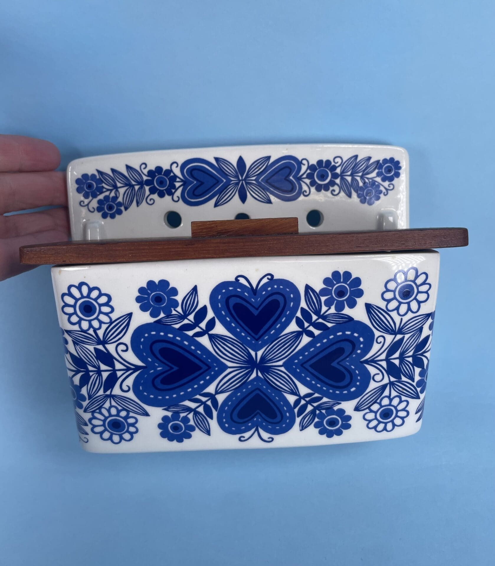 Arabia Sirpa Salt box blue. Good condition, some wear on the lid. Design by Raija Uosikkinen.