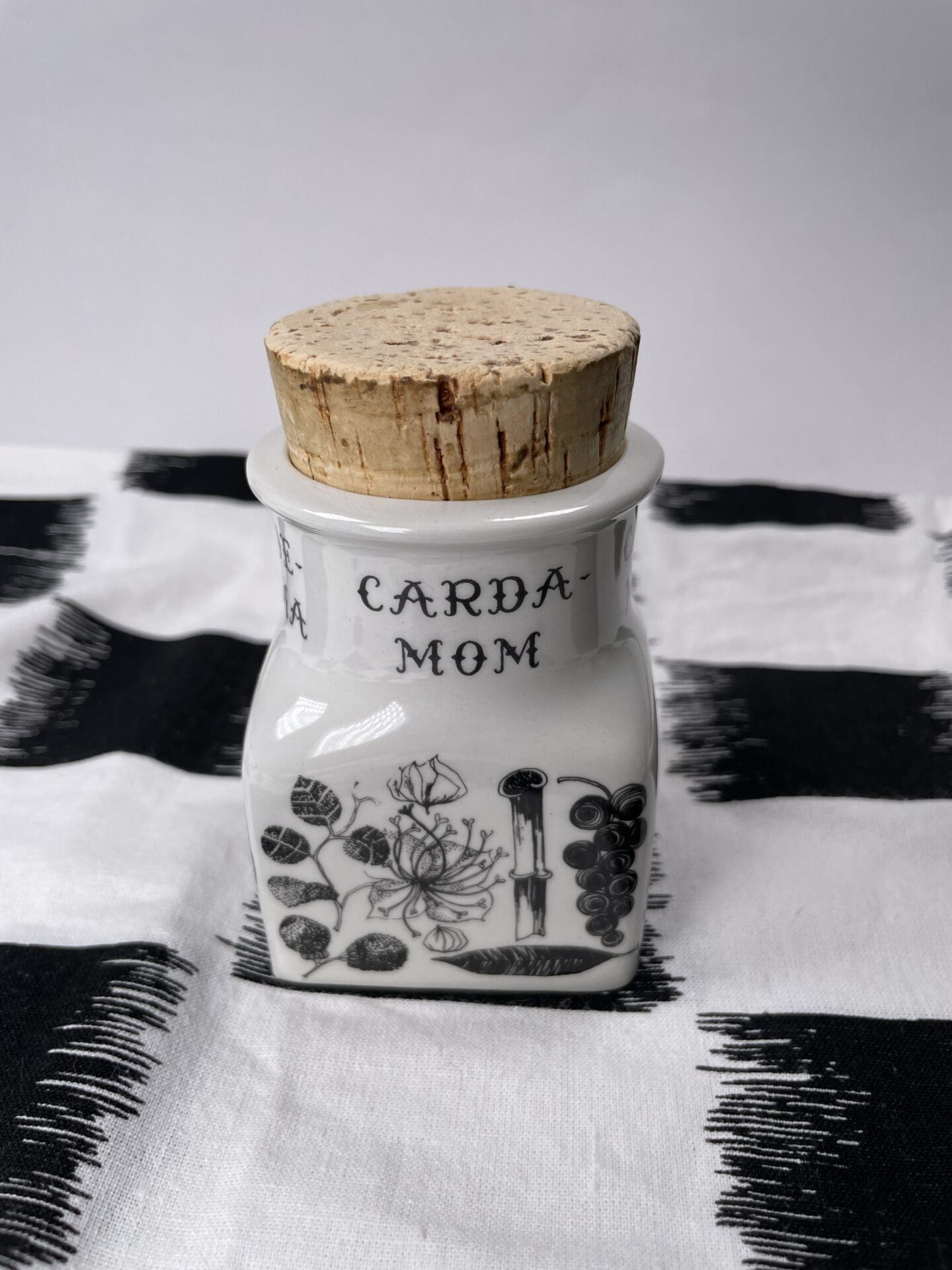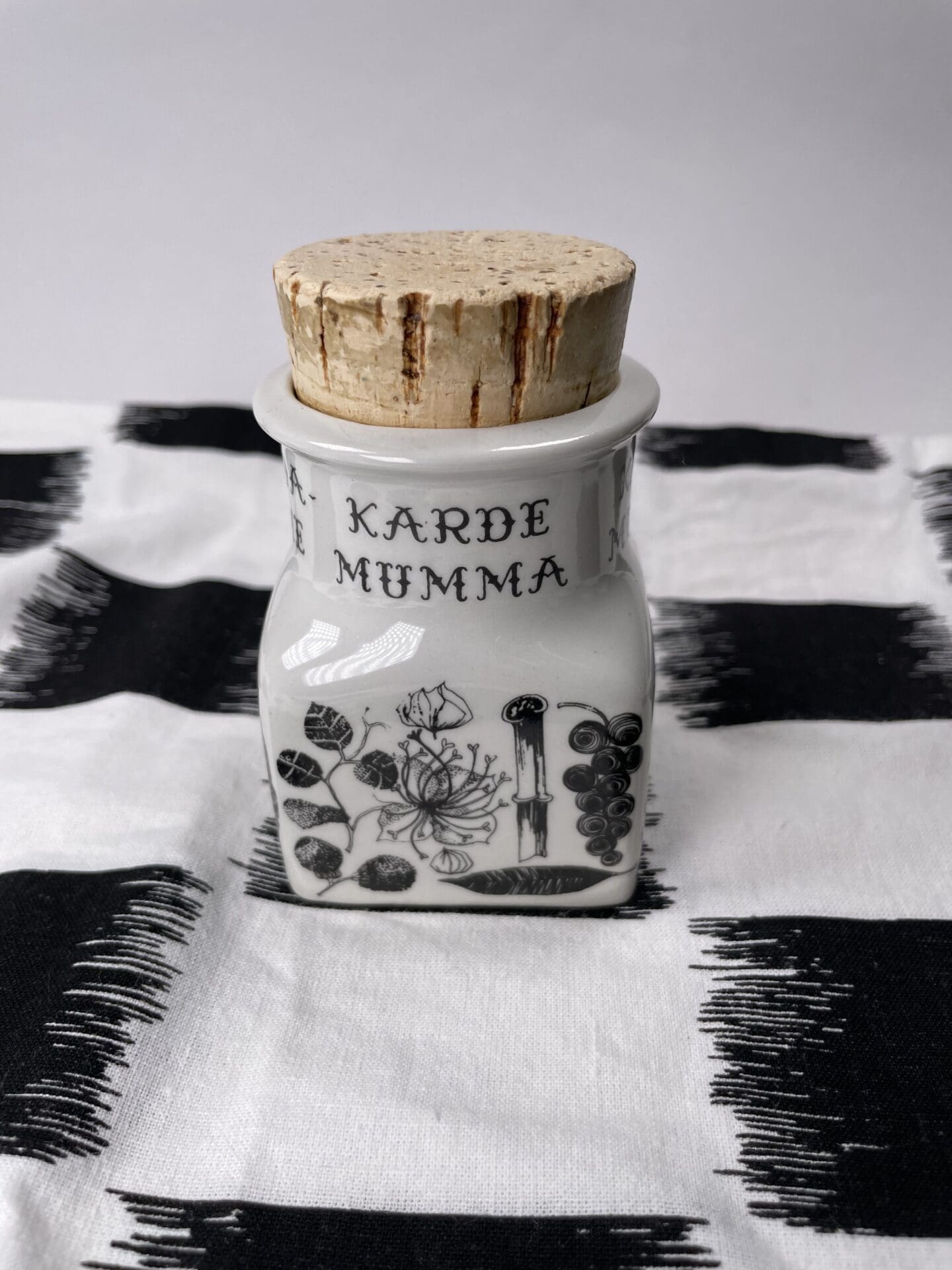 Arabia Spice Jar Cardamom 7,7cm without the lid.  Esteri Tomula pattern, shape by Ulla Procope. Good condition.