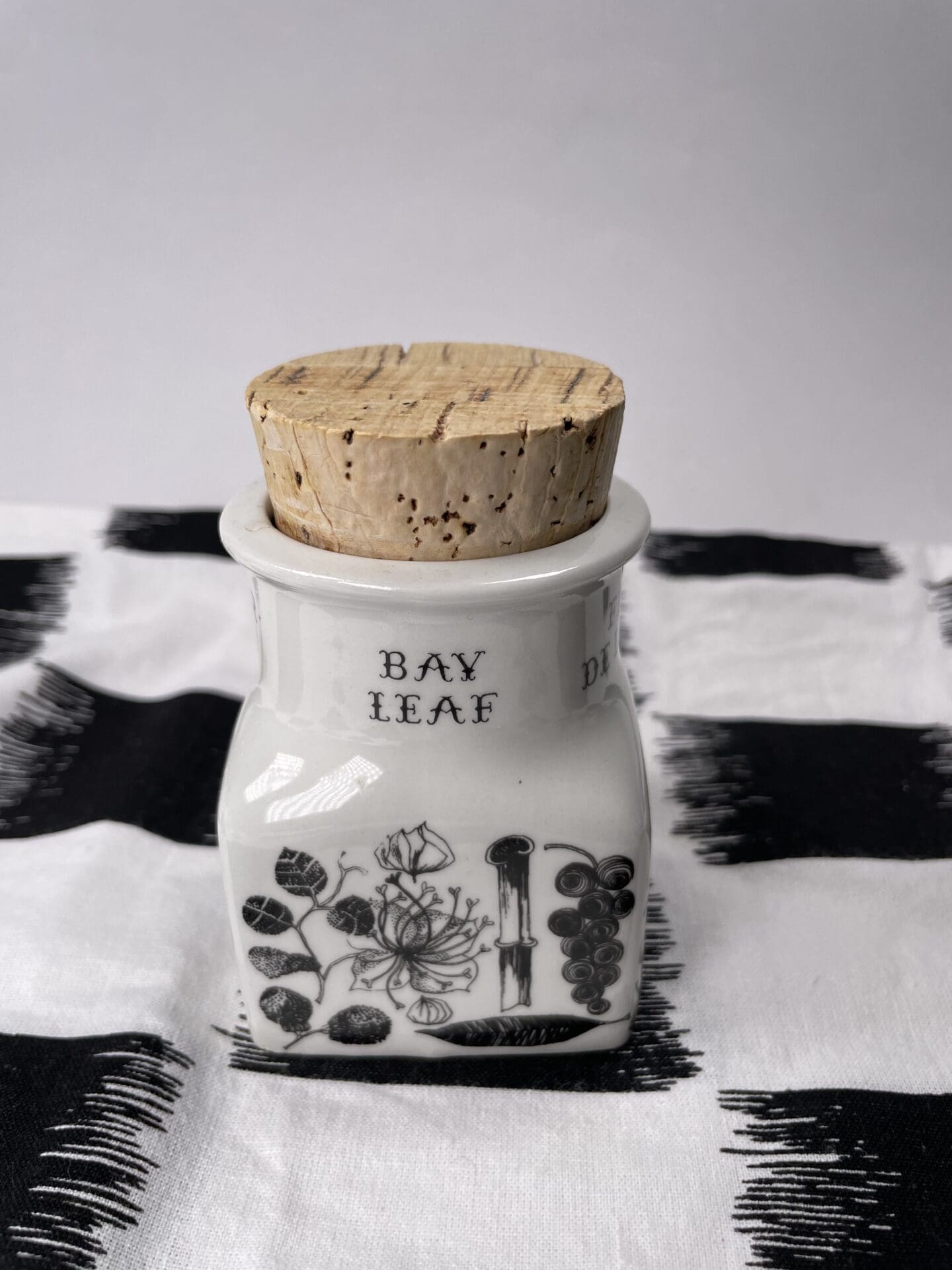 Arabia Spice Jar Bay Leaf 7,7cm without the lid.  Esteri Tomula pattern, shape by Ulla Procope. Good condition.