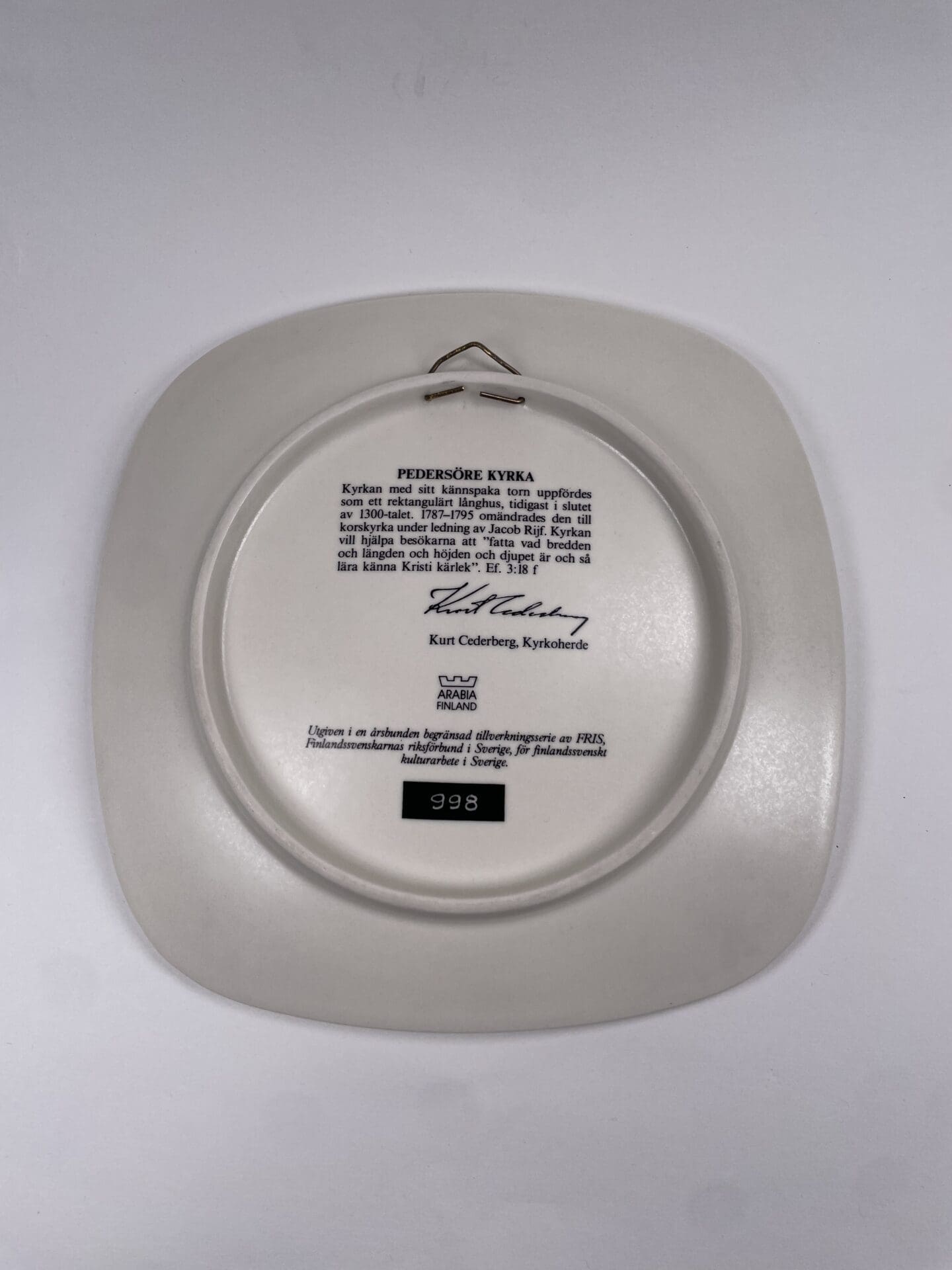 Arabia Wall plate Pedersöre kyrka 1985 20x20cm. Good condition. Number 998.