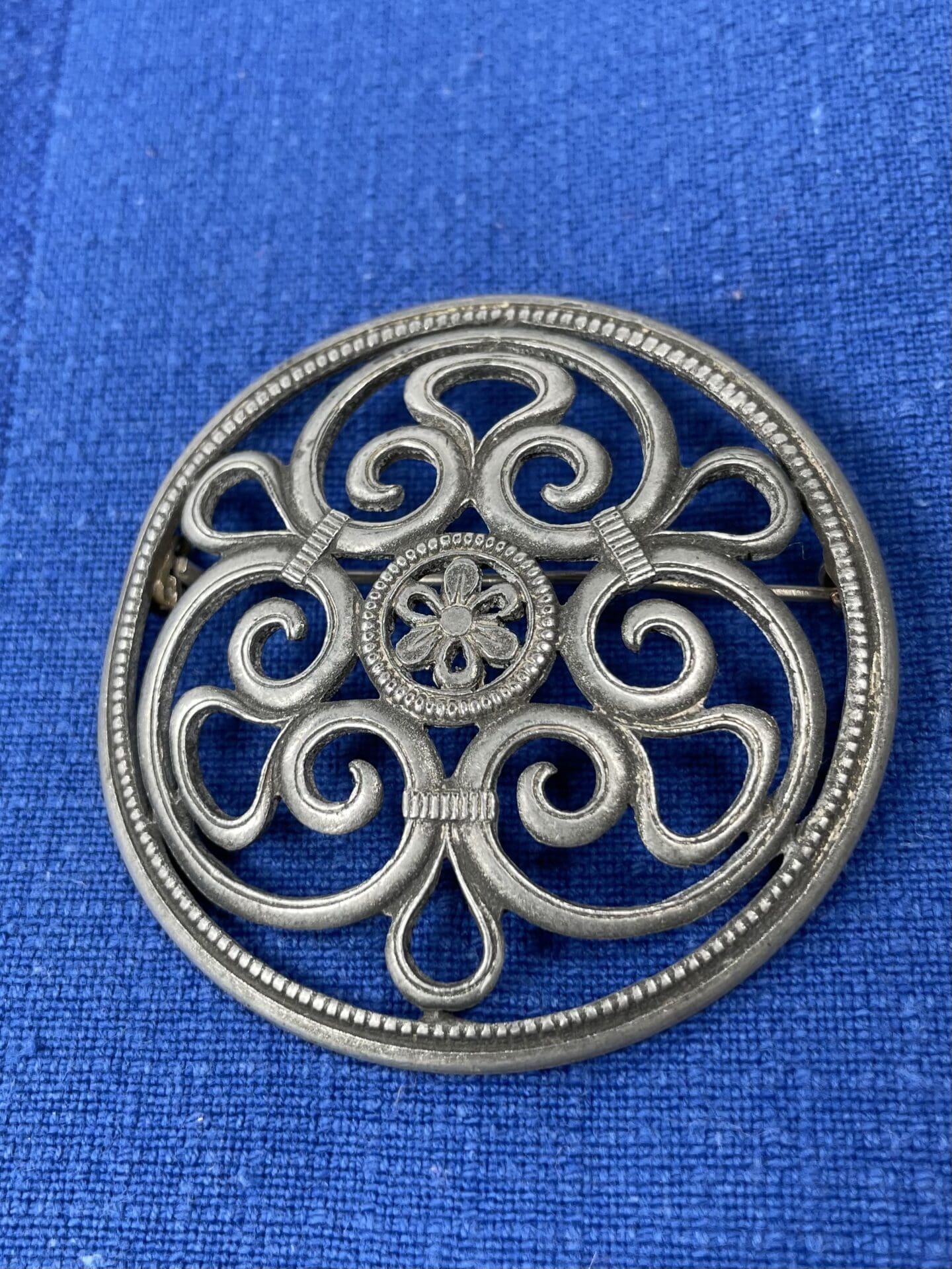 Ato Brooch 60mm Tillander . Was in production during 1938-45. Mixed metals. Designer Siegfried Hanna. Some patina.