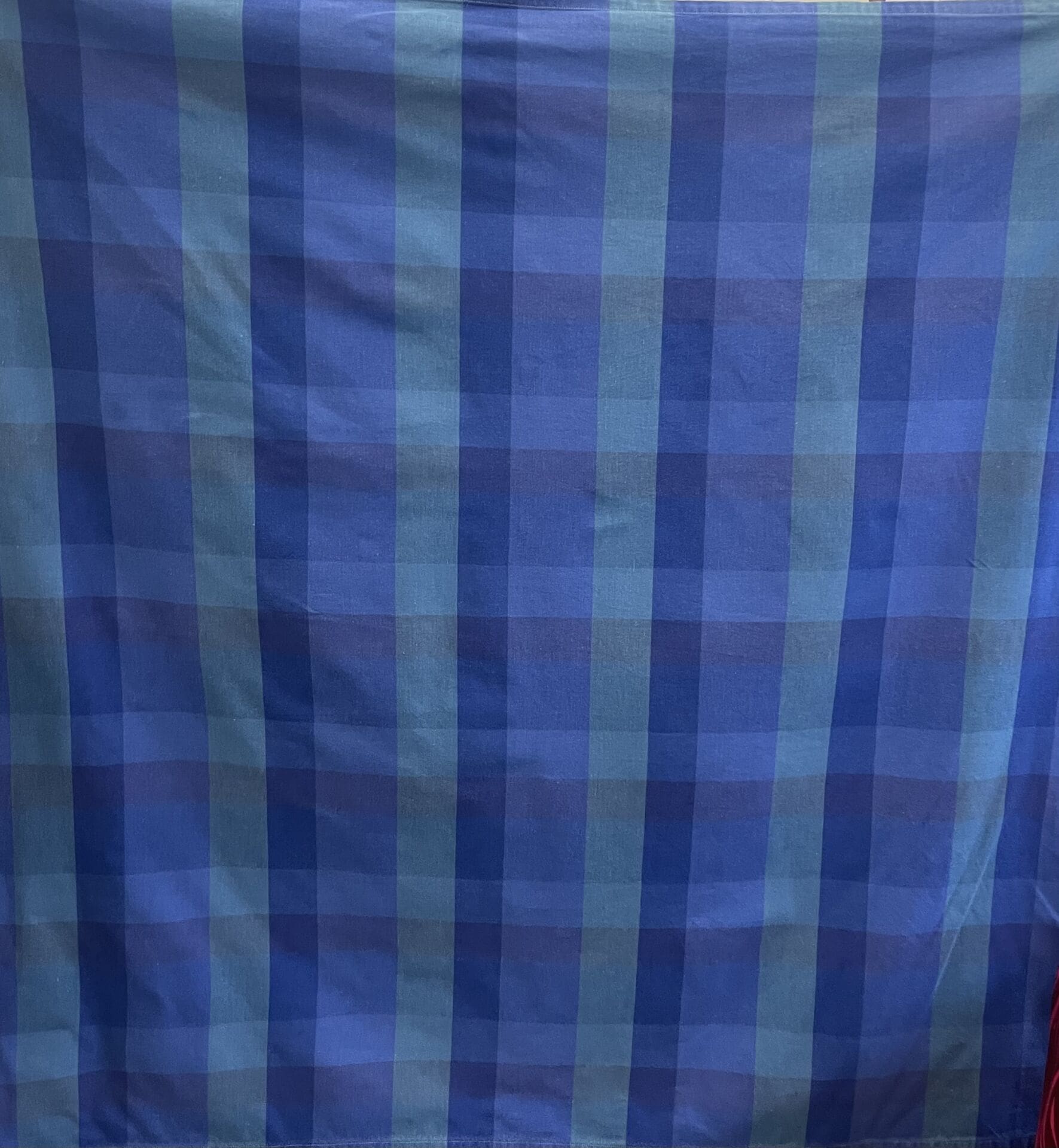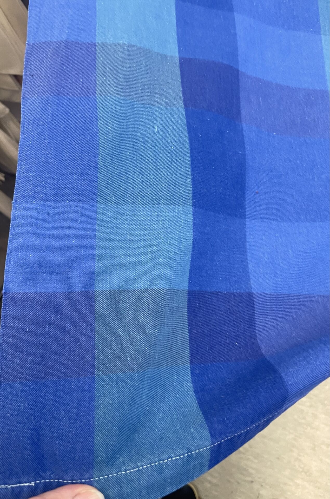 Blue checkered Tablecloth 128x133cm. Good condition, cotton. One small stain.
