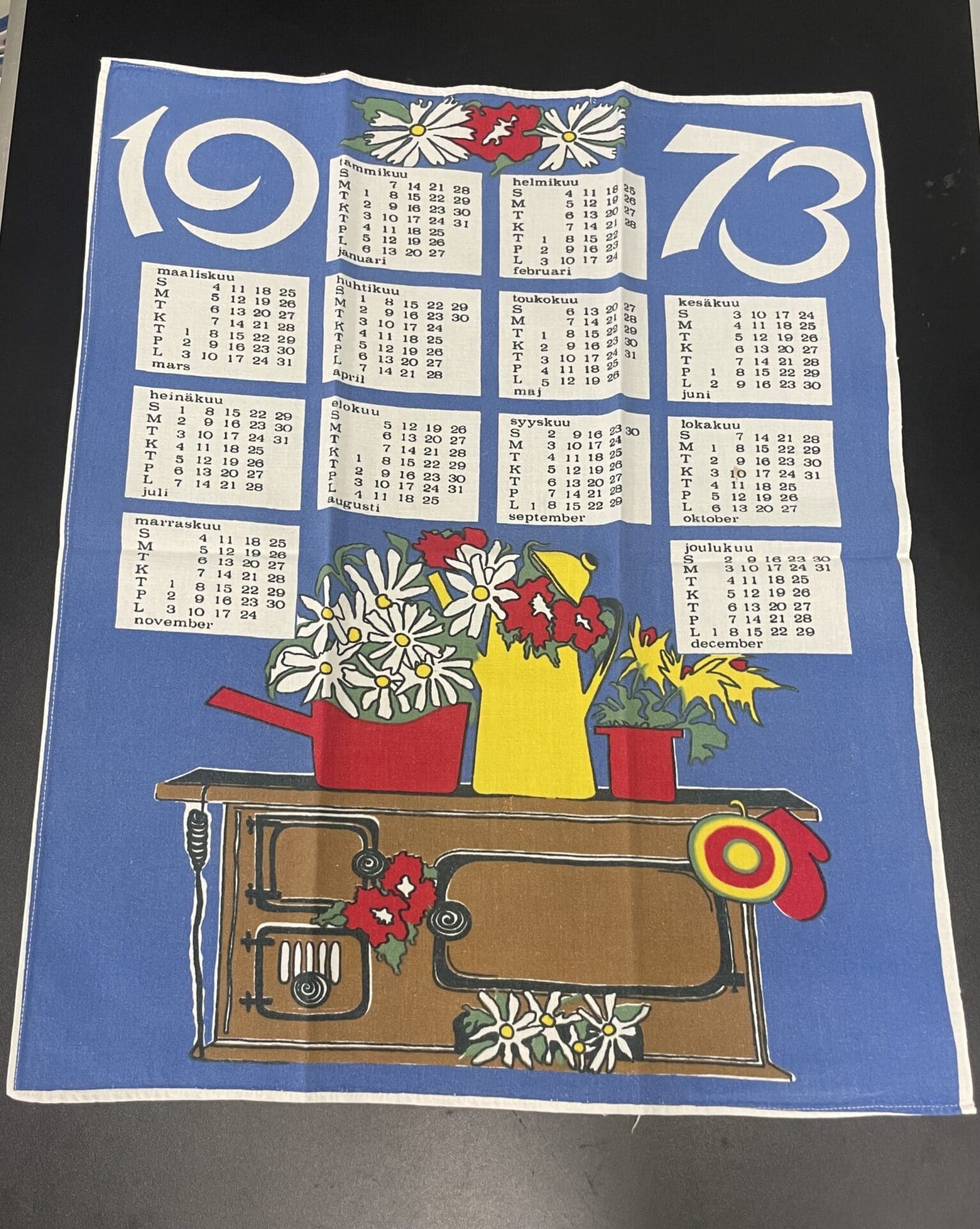 Calendar Teatowel 1973. Good condition. Cotton.