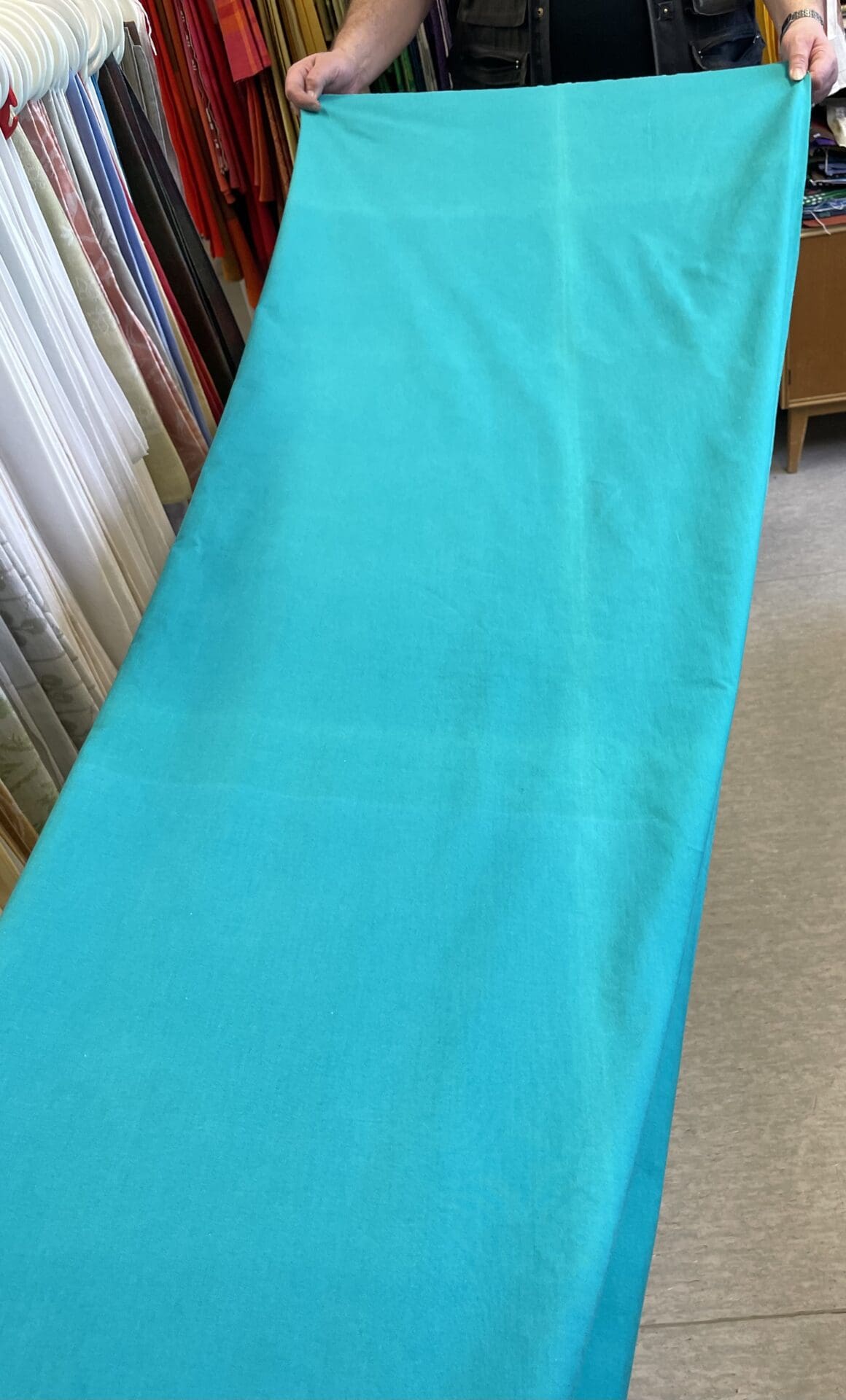 Cotton Fabric Green and Turquoise 140x235cm. Some wear in the color.