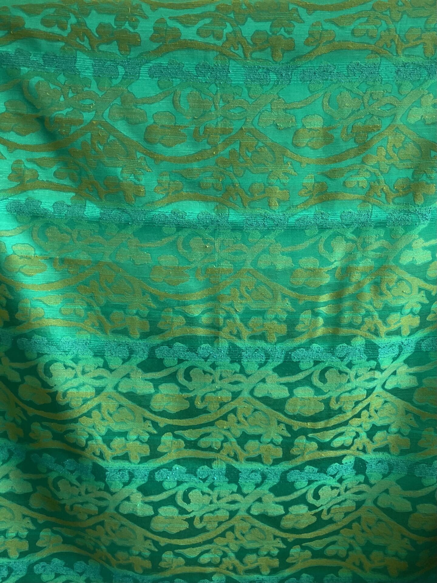 Festive fabric mixed fibers green 127x190cm. Unused. Good for curtains, upholstery etc.