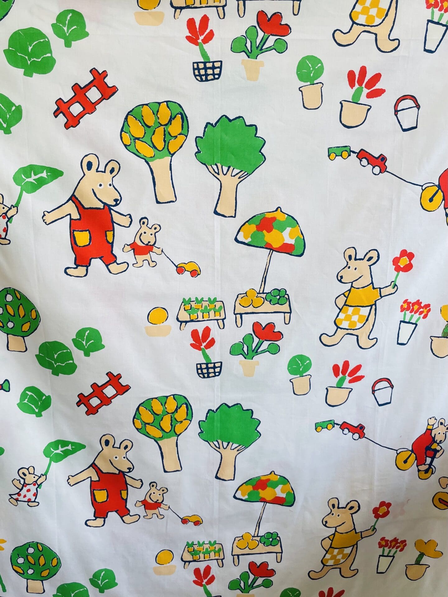 Finlayson Fabric Nalle 150x295cm white Liisa Kota. Good condition. Both ends turned by hand. Cotton. Was in production in the -90’s.