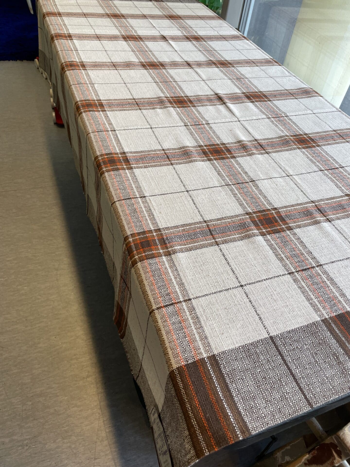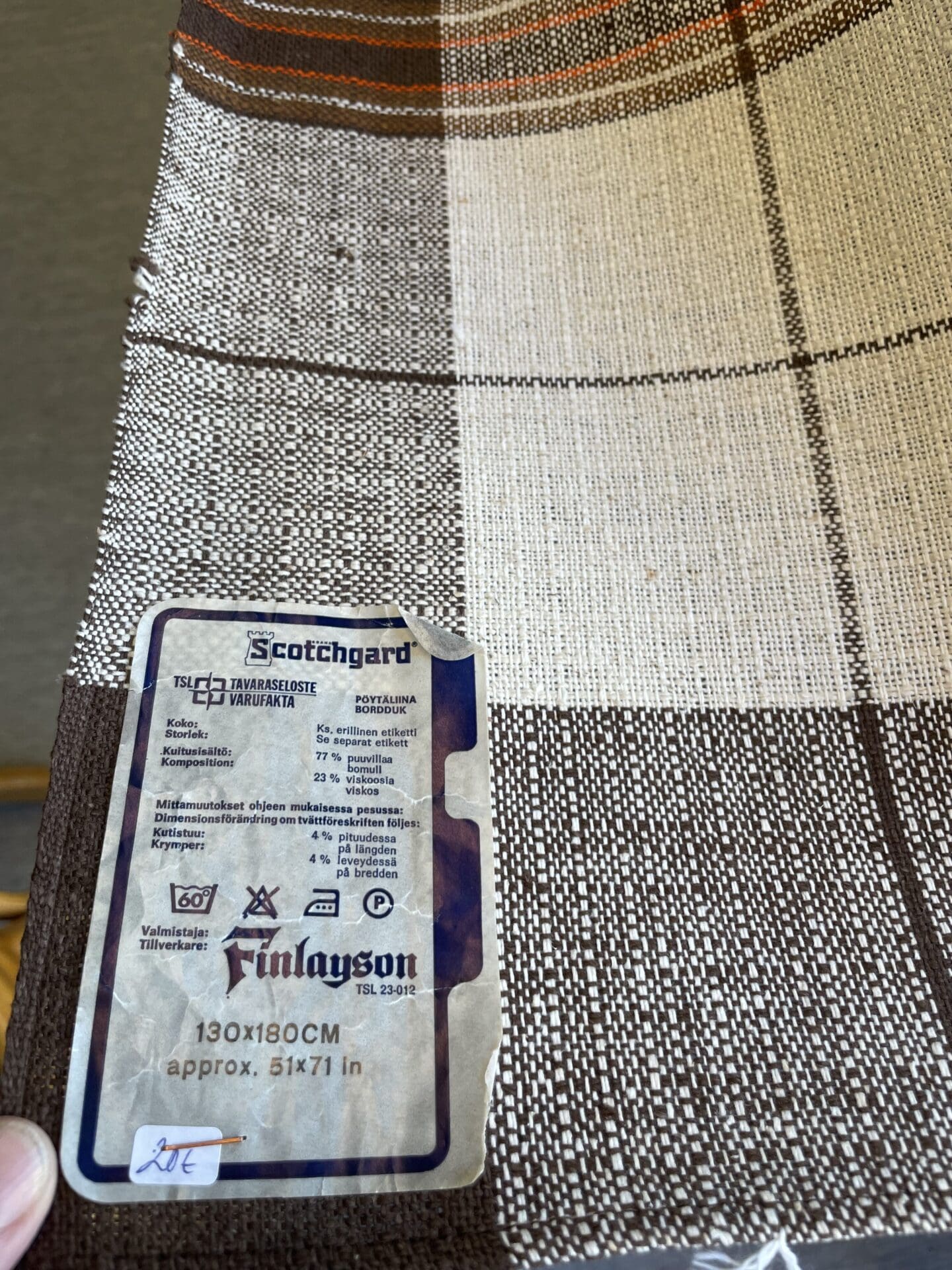 Finlayson Tablecloth 130x180cm brown squares. Good as new. Cotton viscose mix.