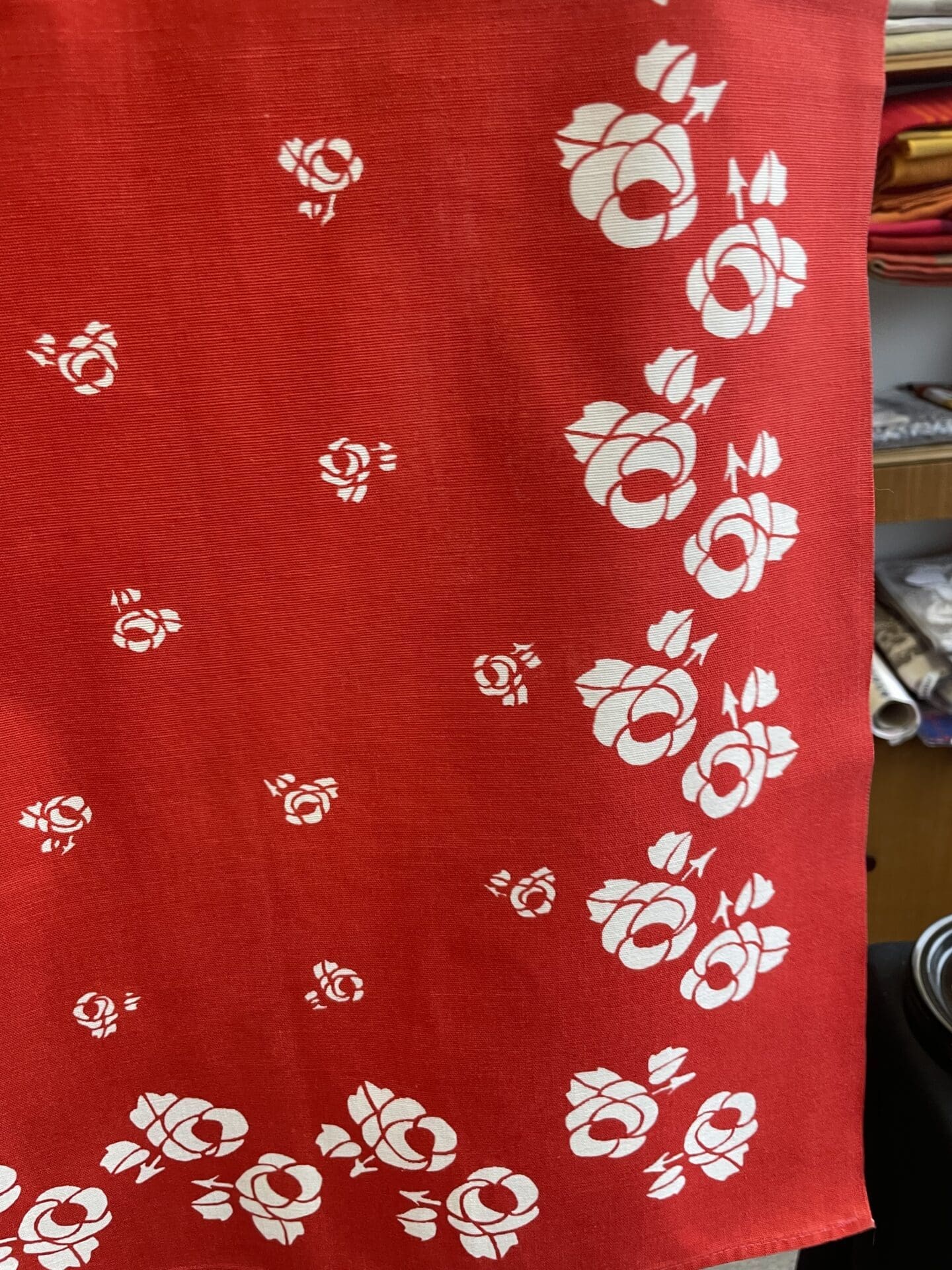 Finlayson Tablecloth red/white 91x82cm. Good condition. Cotton.