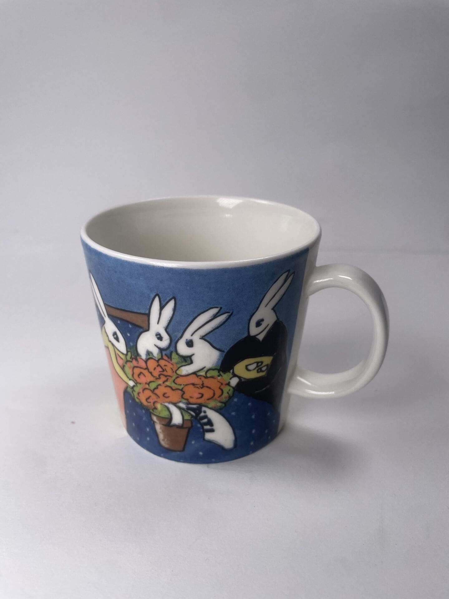 Arabia Teemamug with Heljä Liukko-Sundström pattern  Mother Bunny.  Slight wear. From 2000.