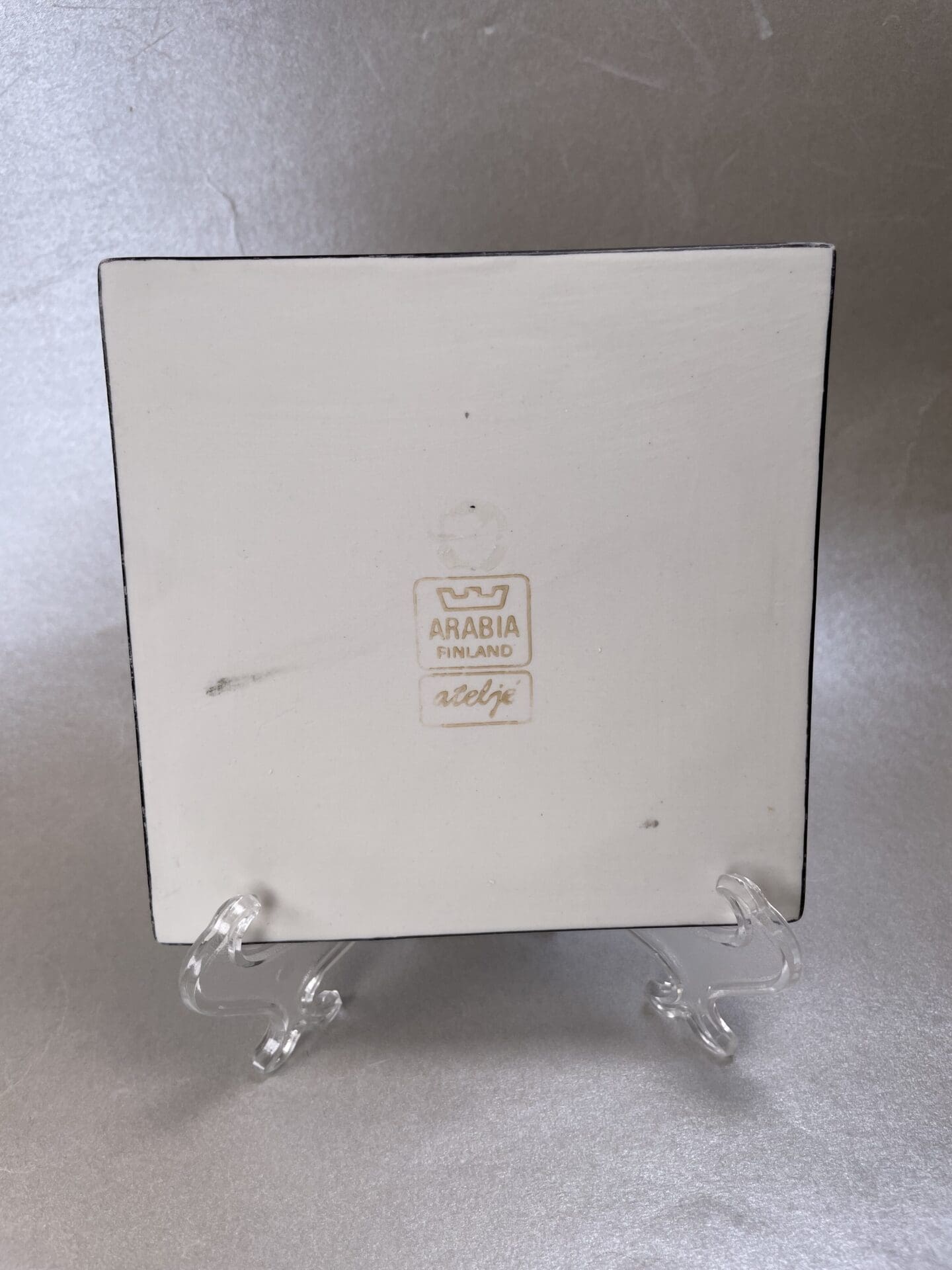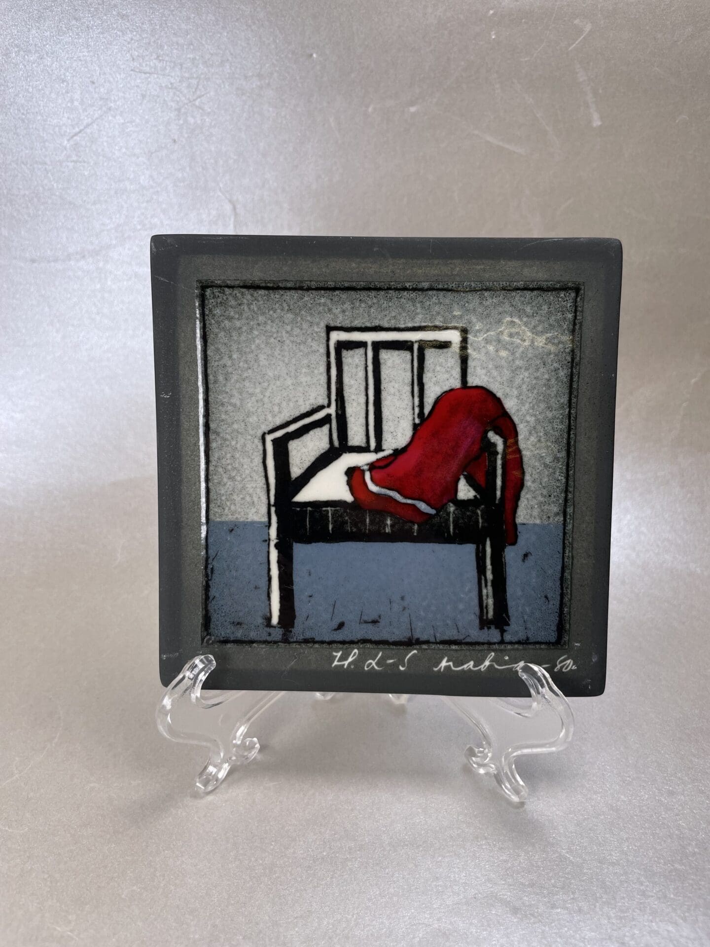 Arabia Heljä Liukko-Sundström wallplate Scarf on a chair from 1980. In good condition. Size 12x12cm.
