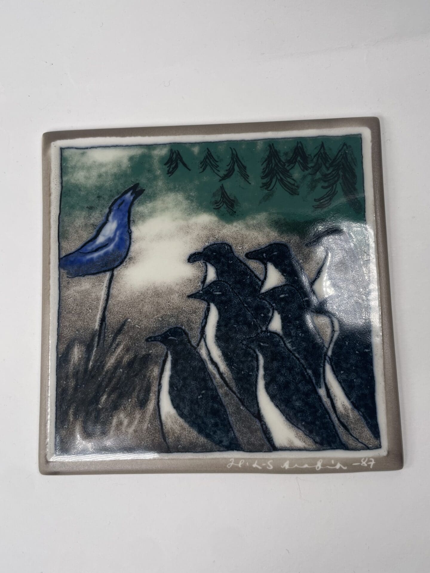 Arabia Heljä Liukko-Sundström wallplate  Consert from 1987. Size 12x12cm. Good condition.