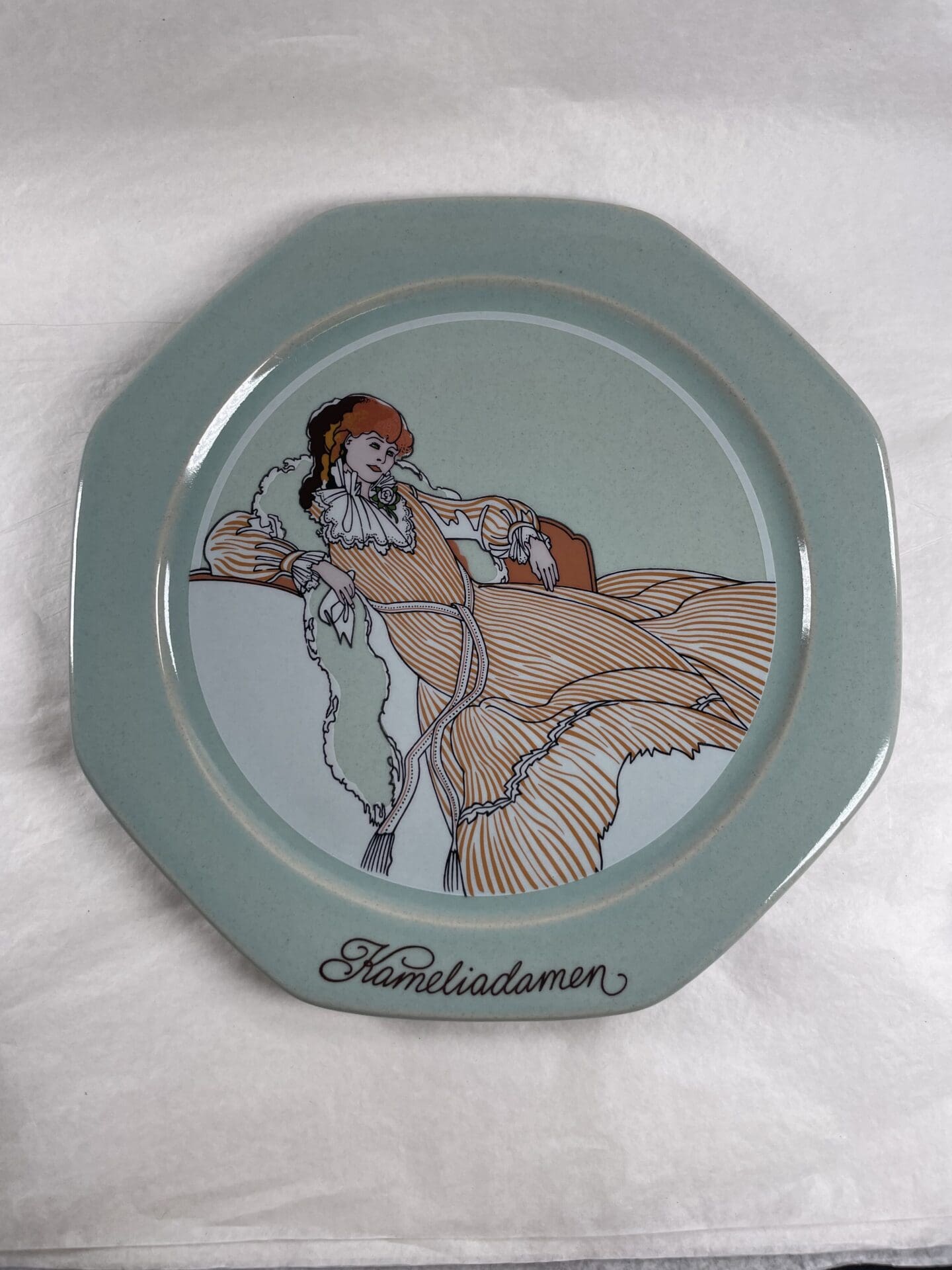 Höganäs Octagon Plate 26,5cm Plate Lady of the Camellias. Good condition.