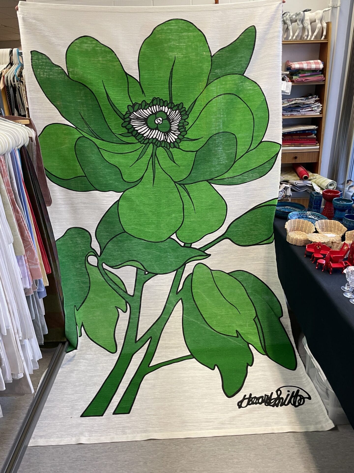 Howard Smith vintage Floral Curtain Green 40x248cm. Mixed fibers. Some wear in the color from washing.