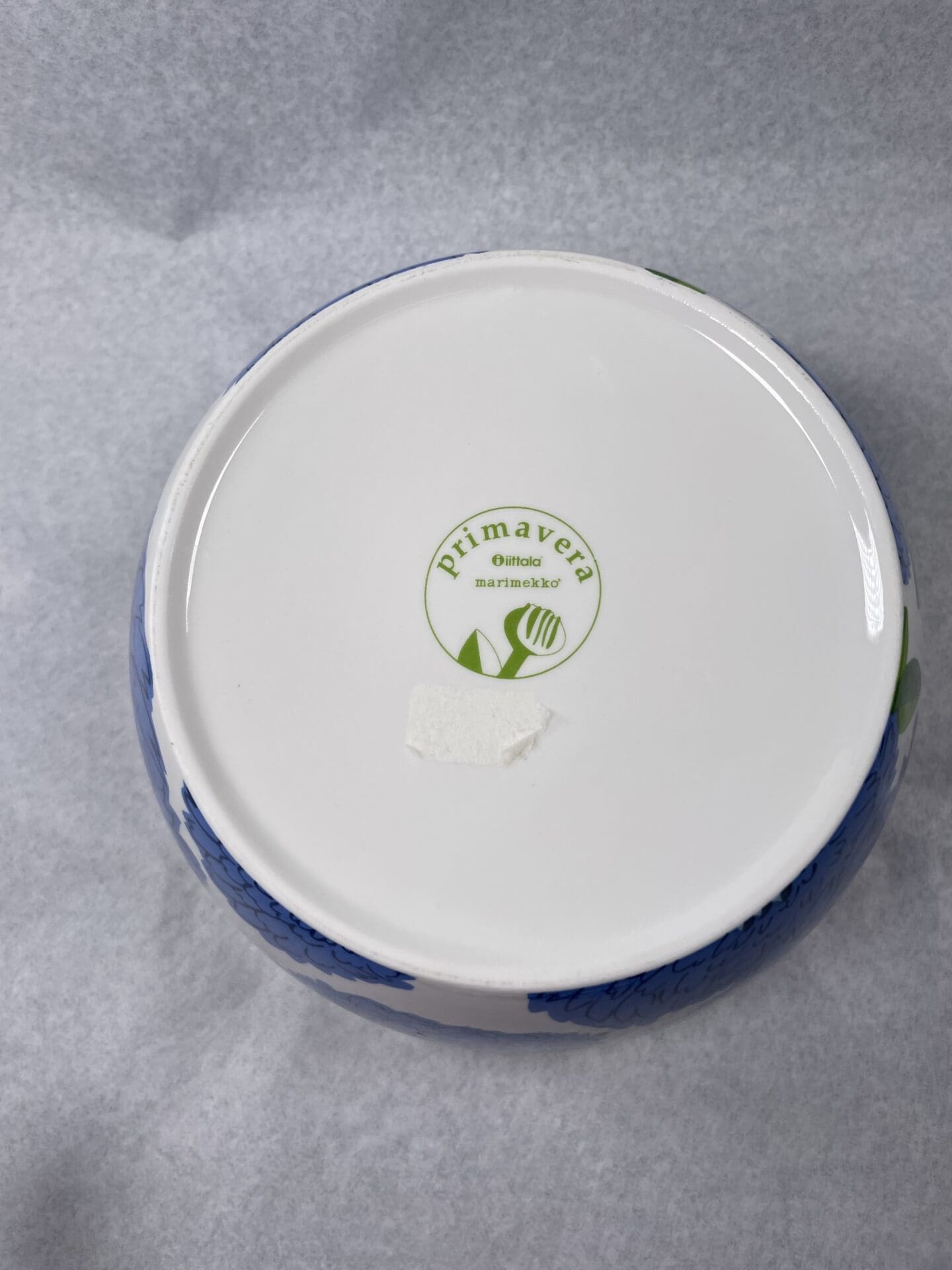 Iittala Primavera Serving bowl Blue. 20,5cm in diameter, 9,5cm high. Good condition. Pattern design by Maija Isola.
