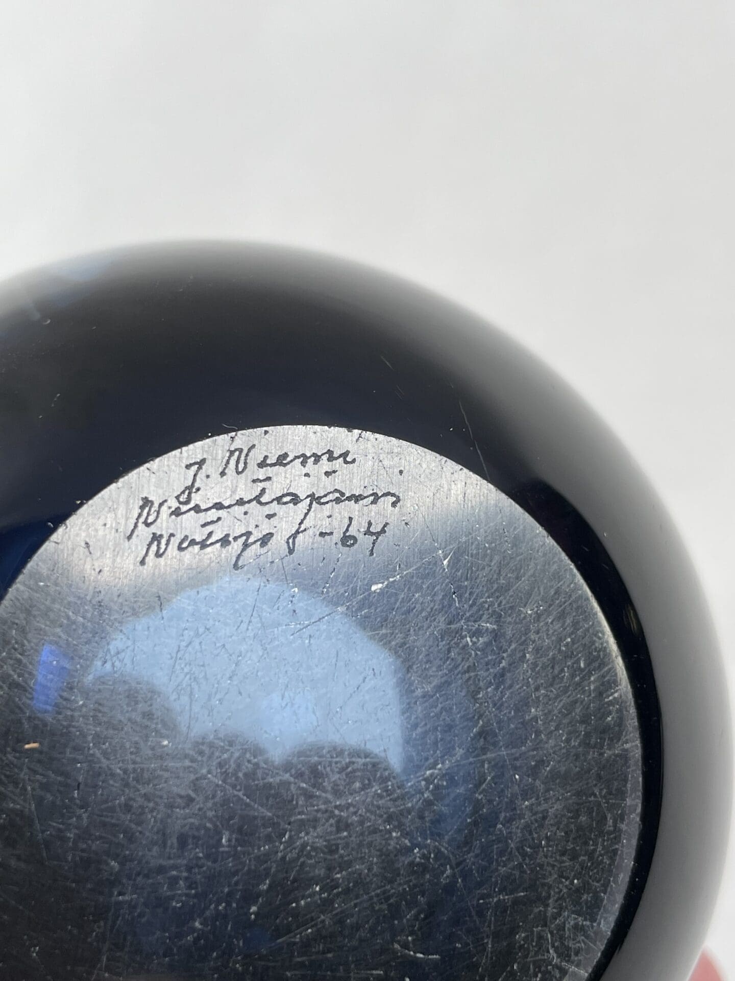 Jaakko Niemi Kukka /Flower art piece blue. At the bottom a tiny chip. Signed.