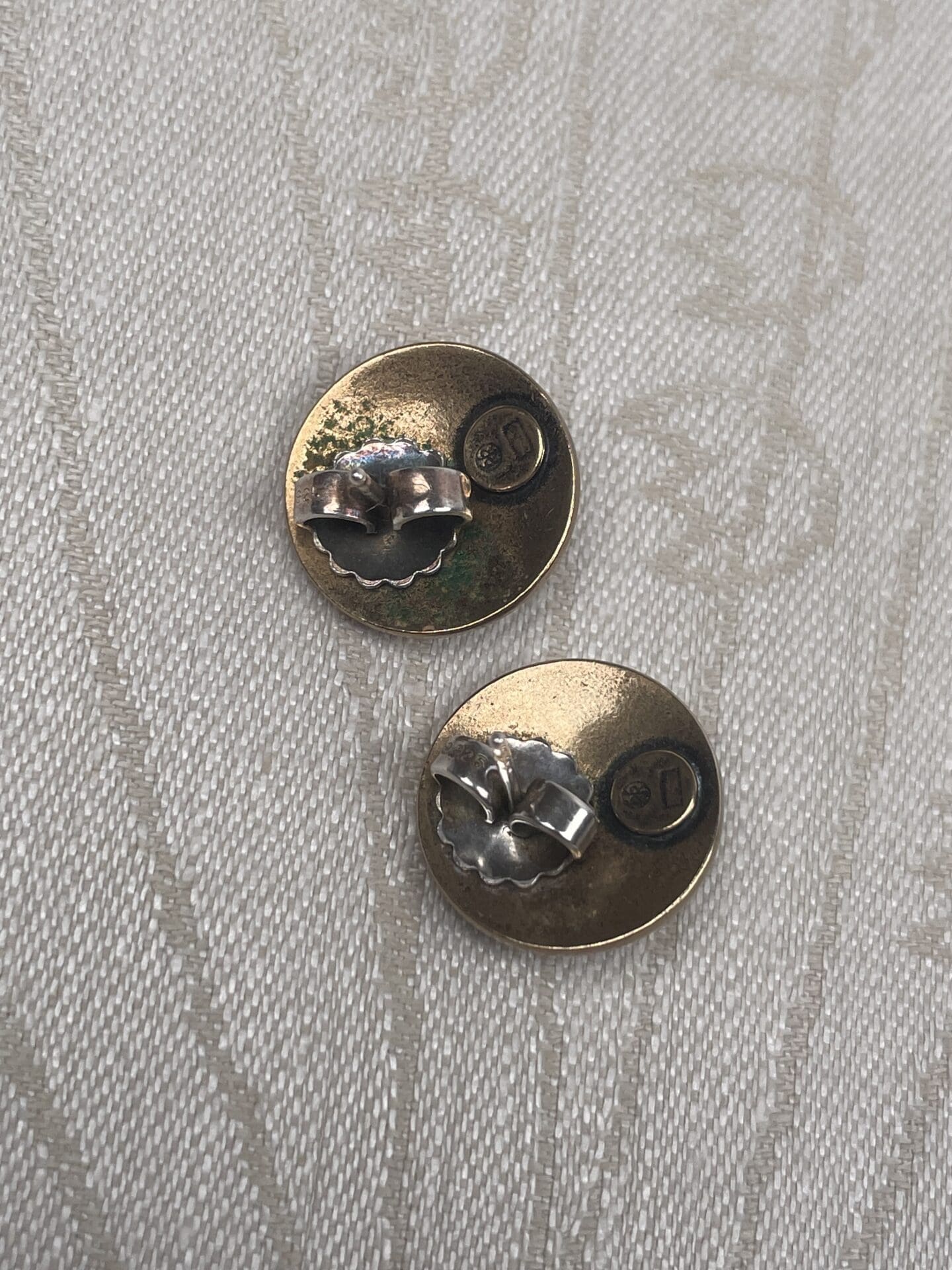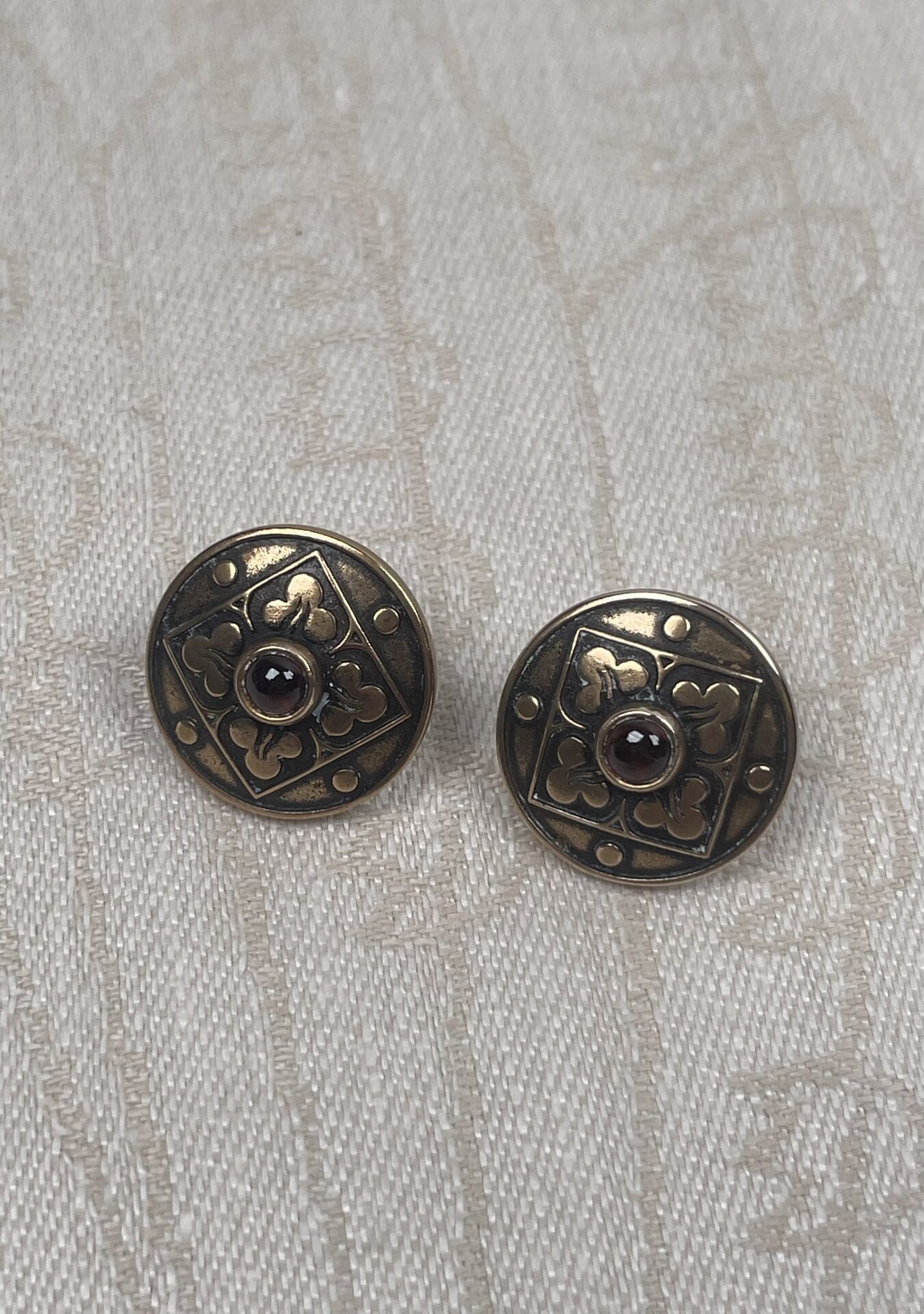Kalevalakoru Earrings Pyhä Birgitta Bronze. Good condition. Size 18mm. Stone Granat.