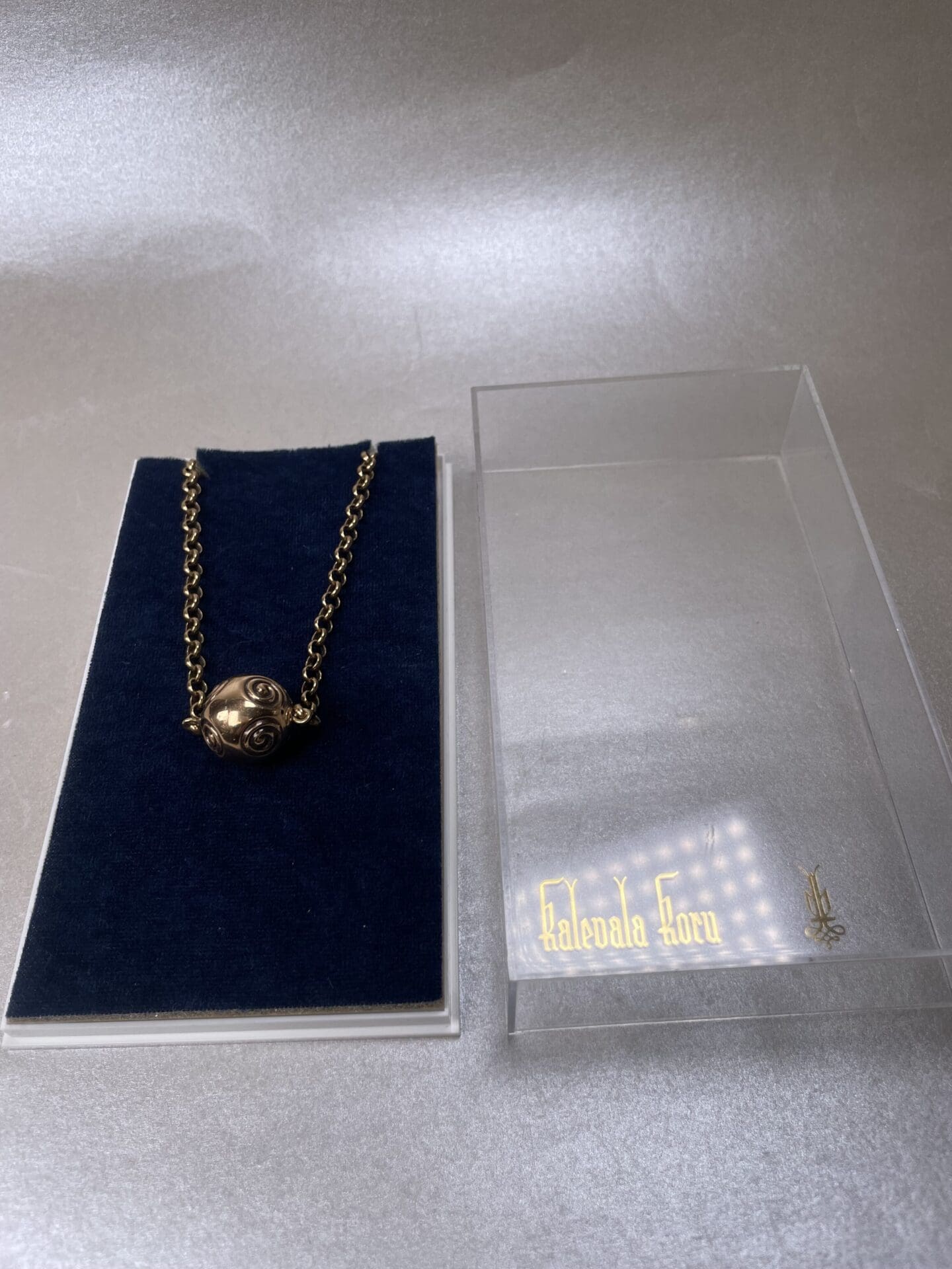 Kalevalakoru Spiraalipallo Necklace 45cm. Good condition.  Bronze. In an original box.