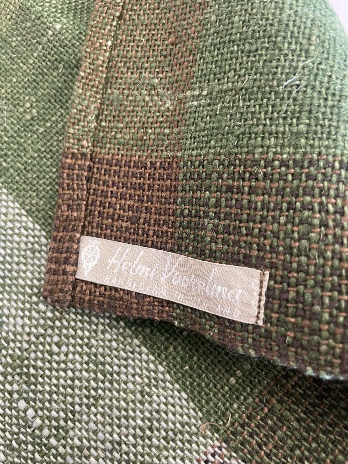 Linen Tablecloth 75x80cm green Helmi Vuorelma. Good condition. Crash linen.