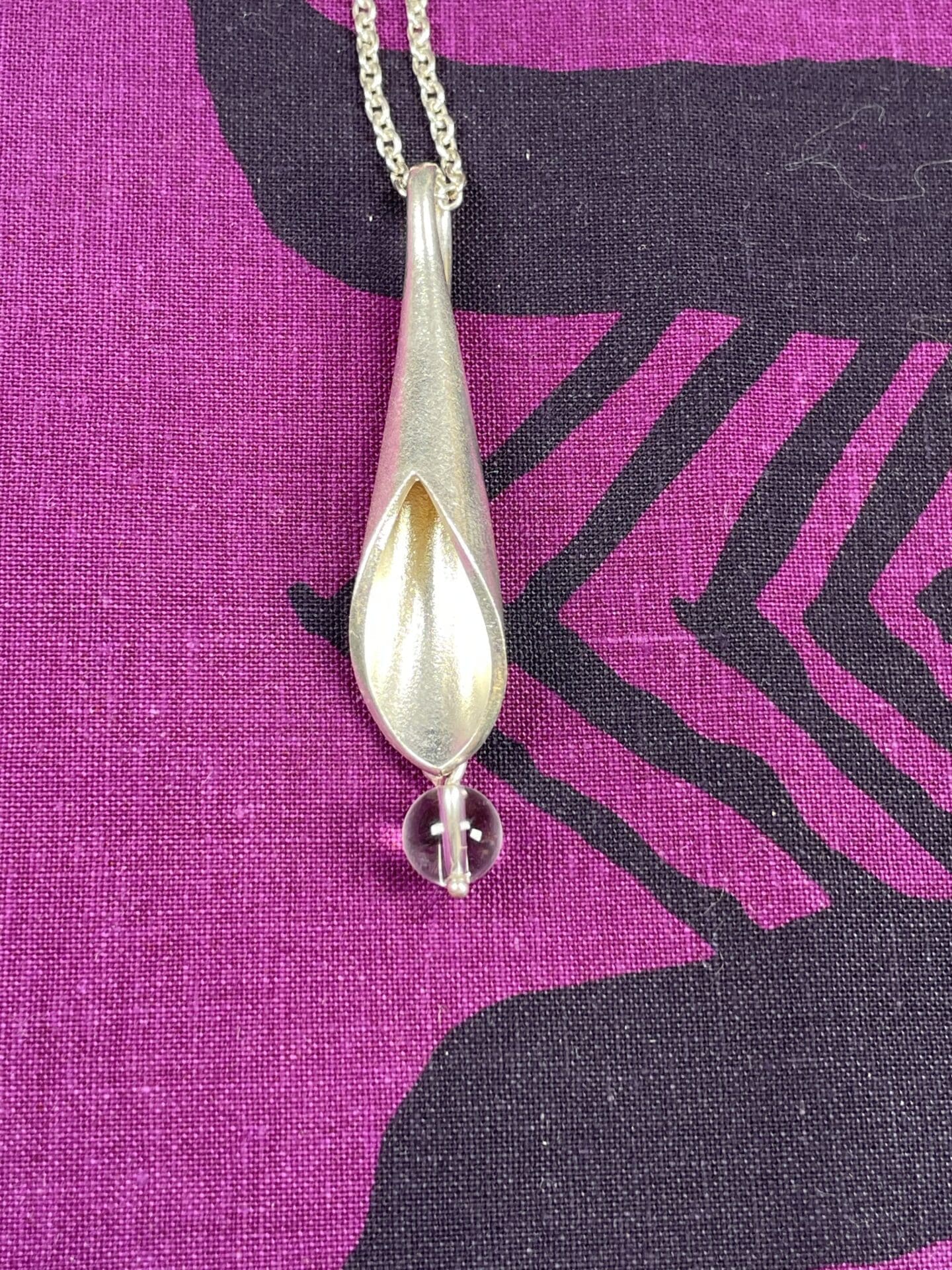 Luoava Pendant Kastehelmi 925-hopeaa. Pendant 14x67mm. Chain 85cm, Rock Chrystal stone 8mm.