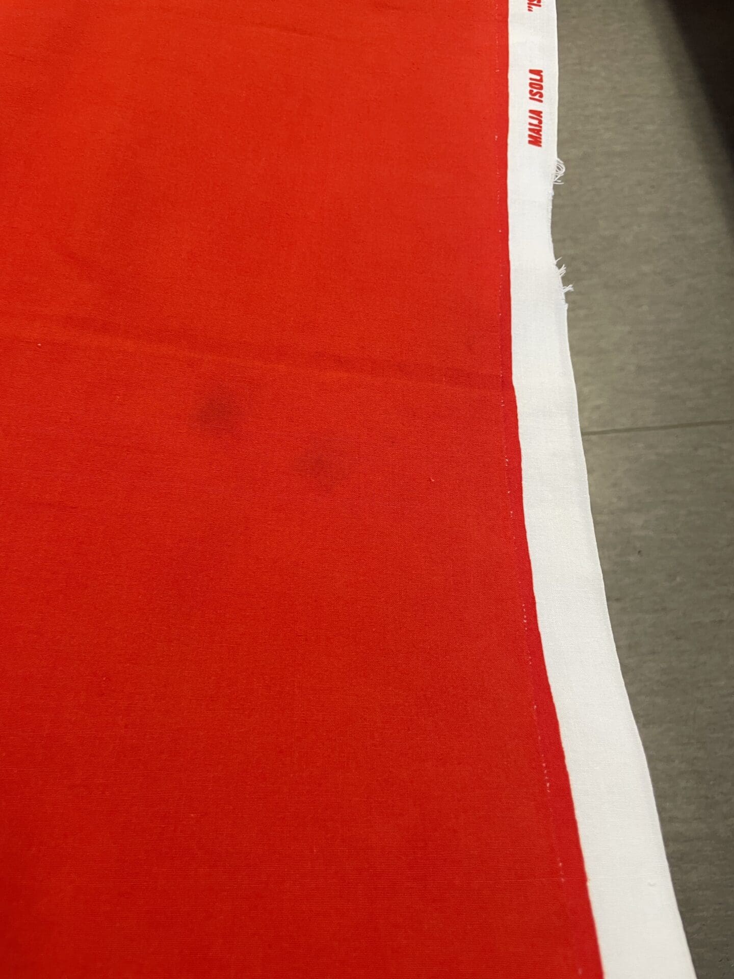 Marimekko Curtain Istuva Härkä red/green 135x244cm Maija Isola. Some color defaults, one stain close to the end, on slice missing from the side in the middle. Cotton.