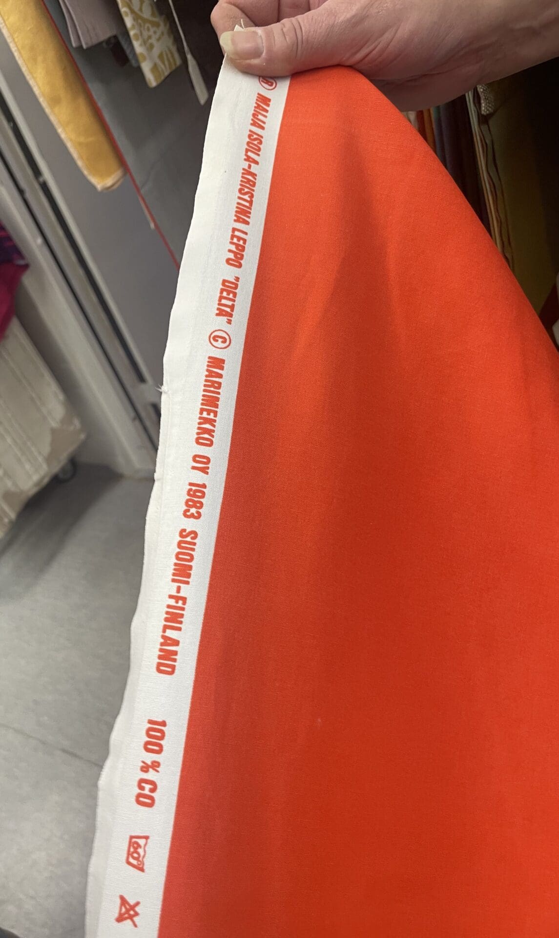 Marimekko Fabric Delta 151x180cm Maija ja Kristina Isola (Leppo). Cotton, one stain in the middle.