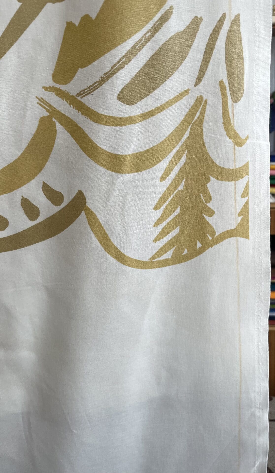 Marimekko Fabric Ruhtinas 146x250cm Fujiwo Ishimoto. Good condition, at the side a printing error stripe. Cotton.