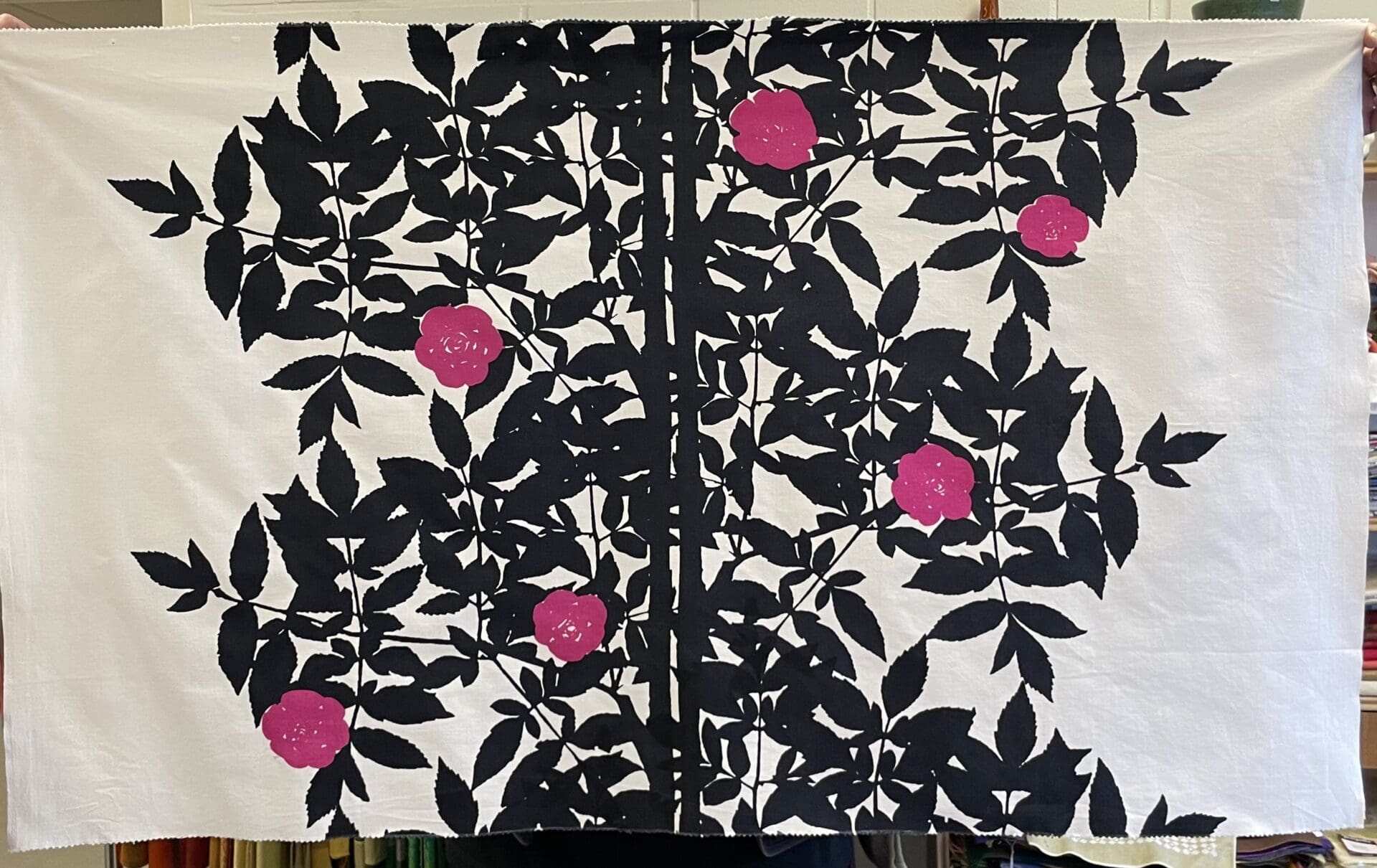Marimekko Fabric Ruusupuu 127x70cm Maija Isola. Two tiny holes on the top. Cotton.