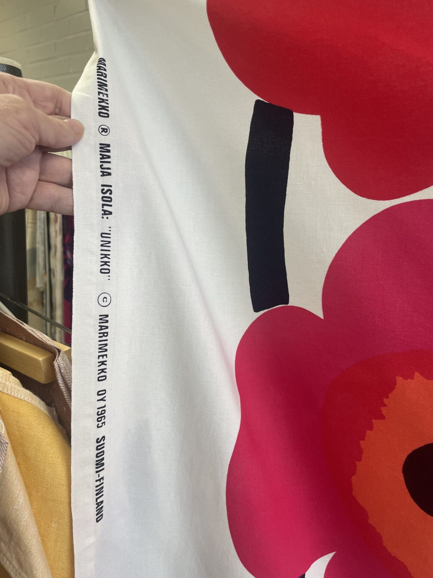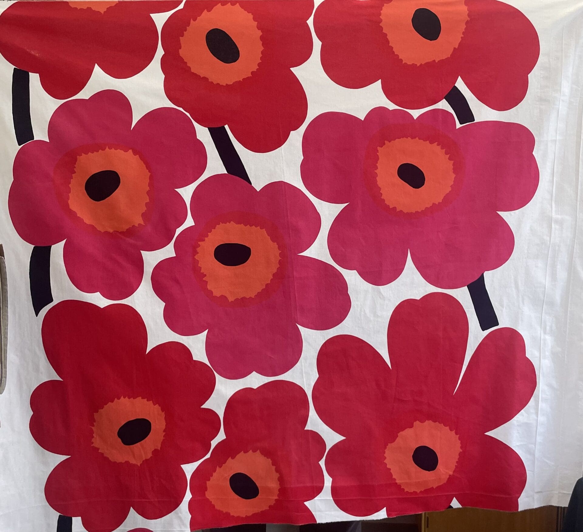 Marimekko Fabric Unikko Red 146x115cm Maija Isola. Good condition. Cotton. Used to be a curtain. Some marks from that.