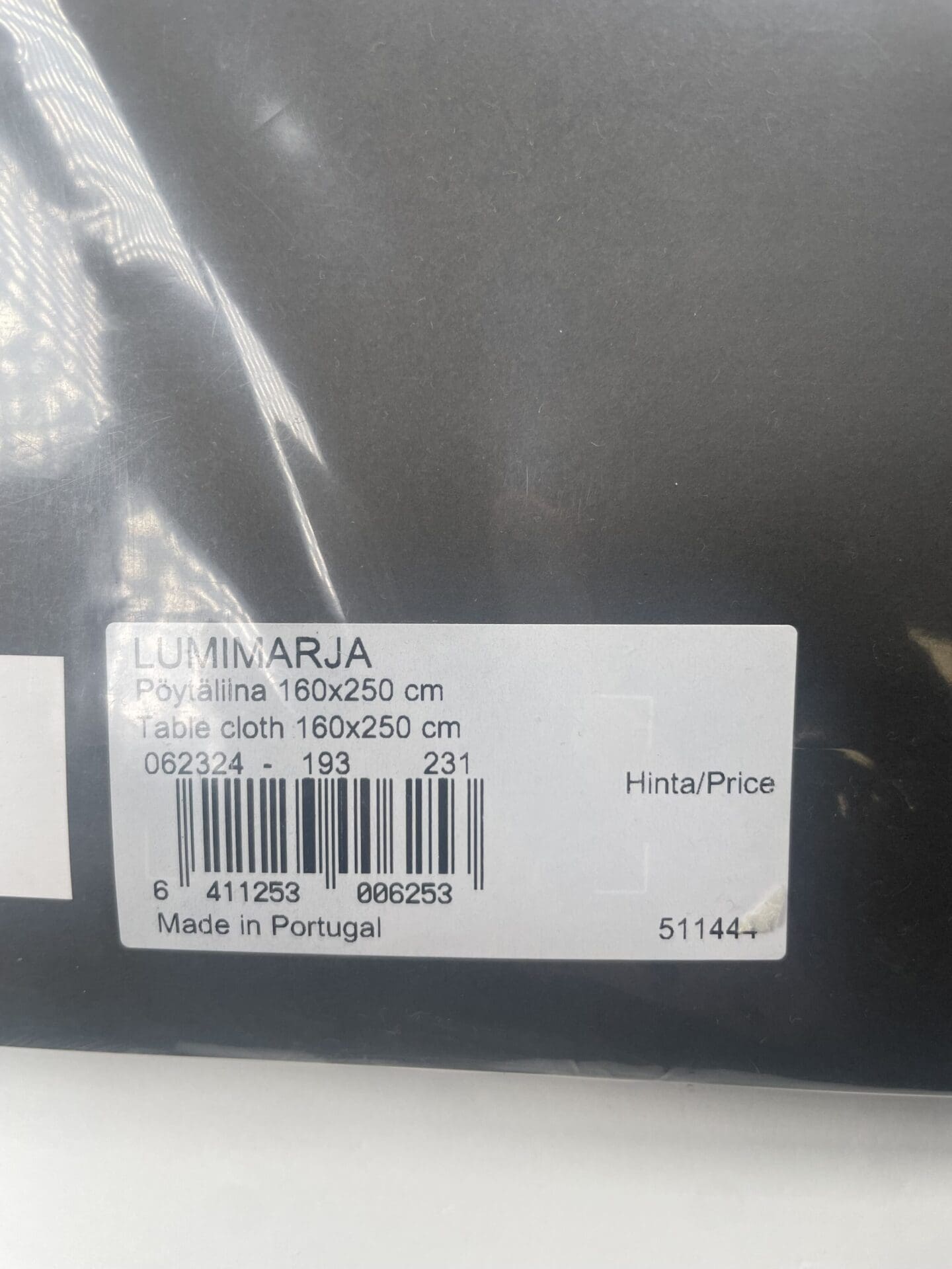 Marimekko Lumimarja Tablecloth 160x250cm Erja Hirvi. Good as new. Unopened pagage. Cotton.