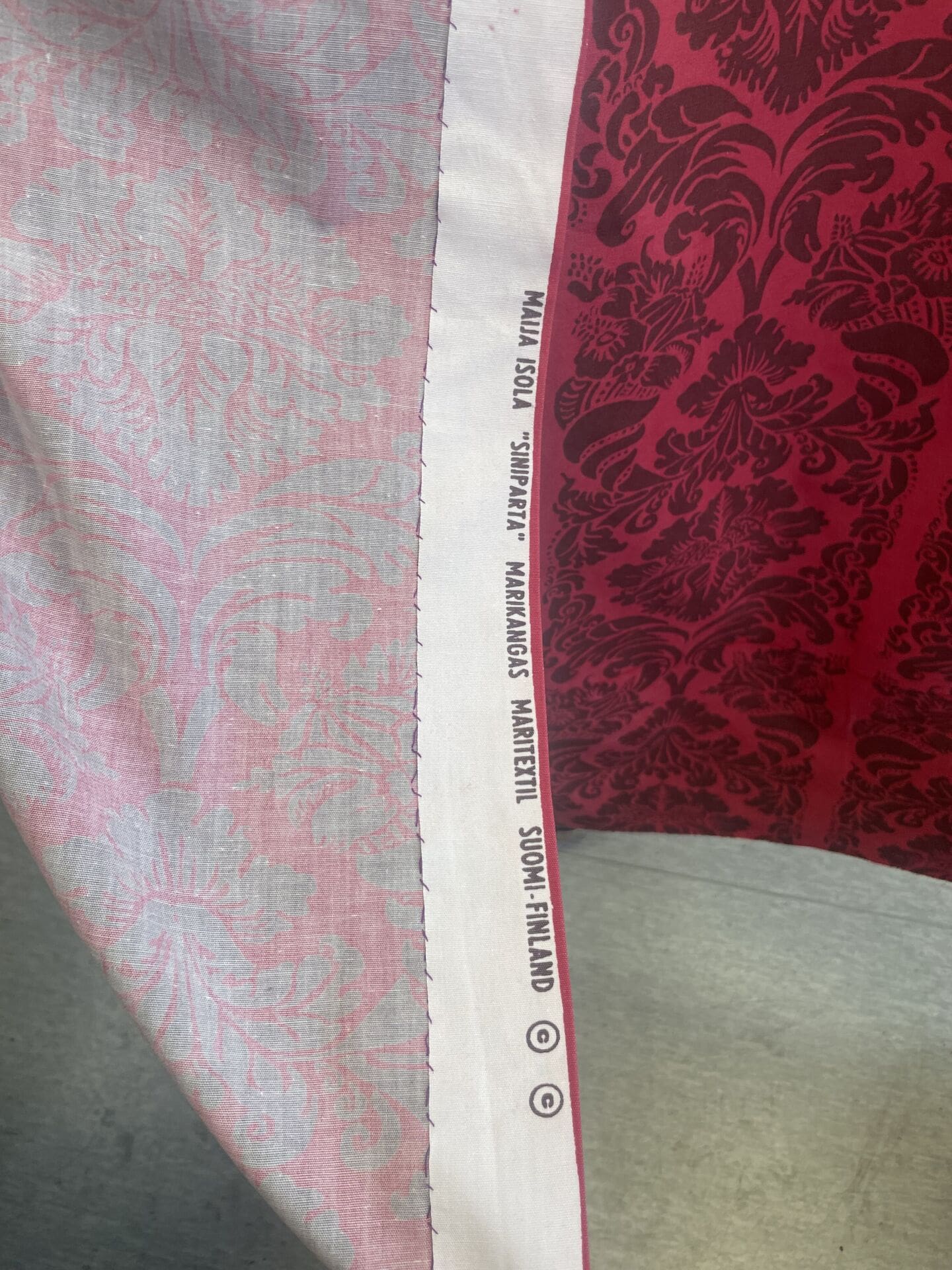 Marimekko Maritextil Vintage Fabric Siniparta 130x115cm. Good condition, little wear. Handprinted. Designer Maija Isola.