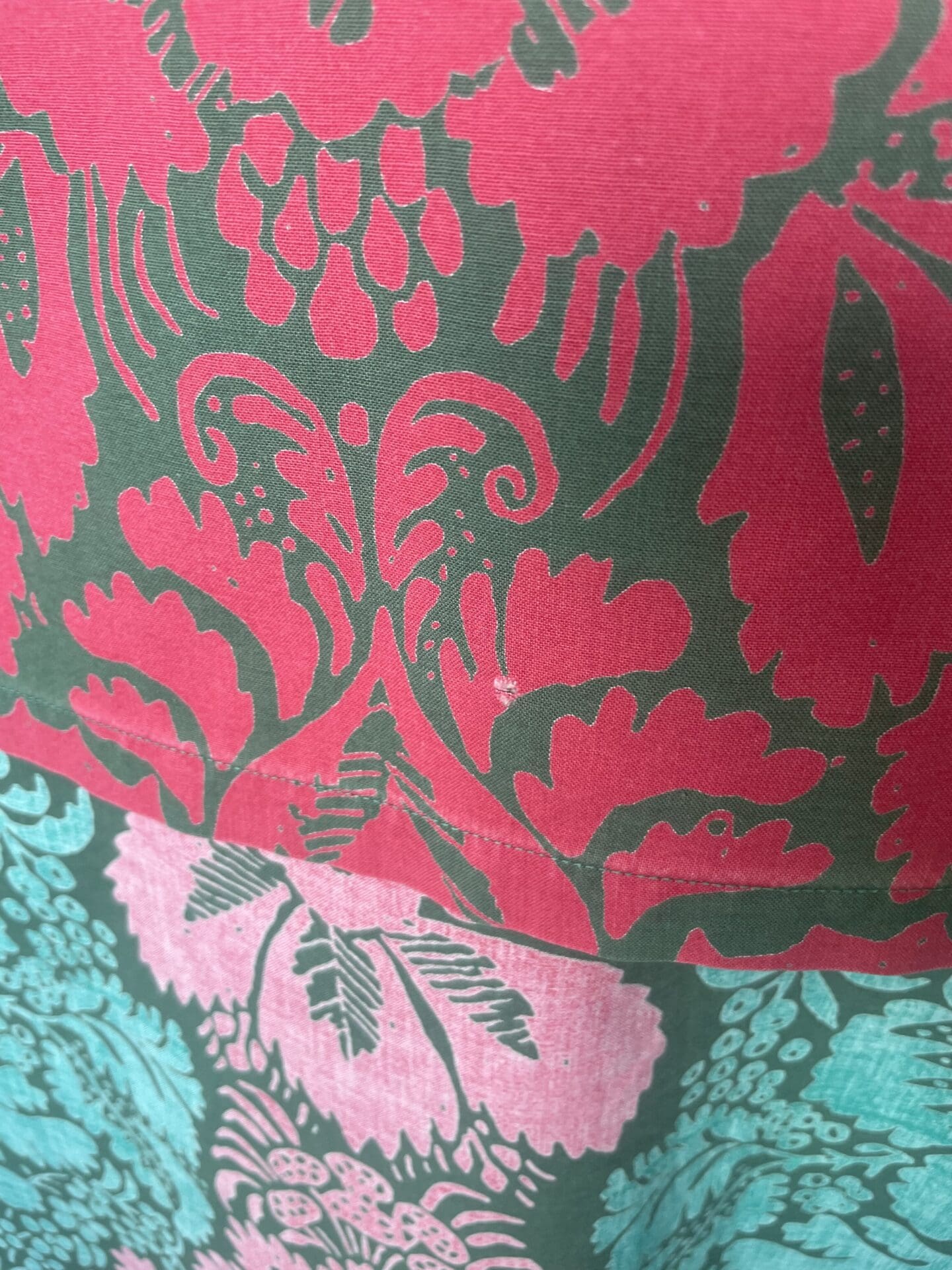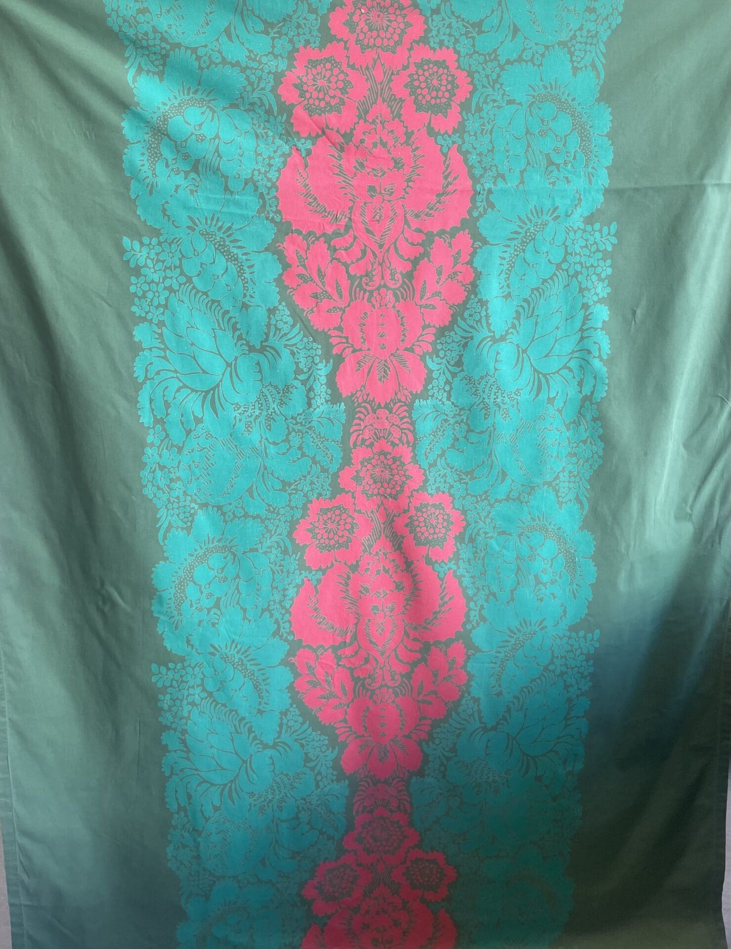 Marimekko Tablecloth Ananas 132x270cm Maija Isola. One spotlike red printing error repeats. A fiew small holes from wear. Cotton.