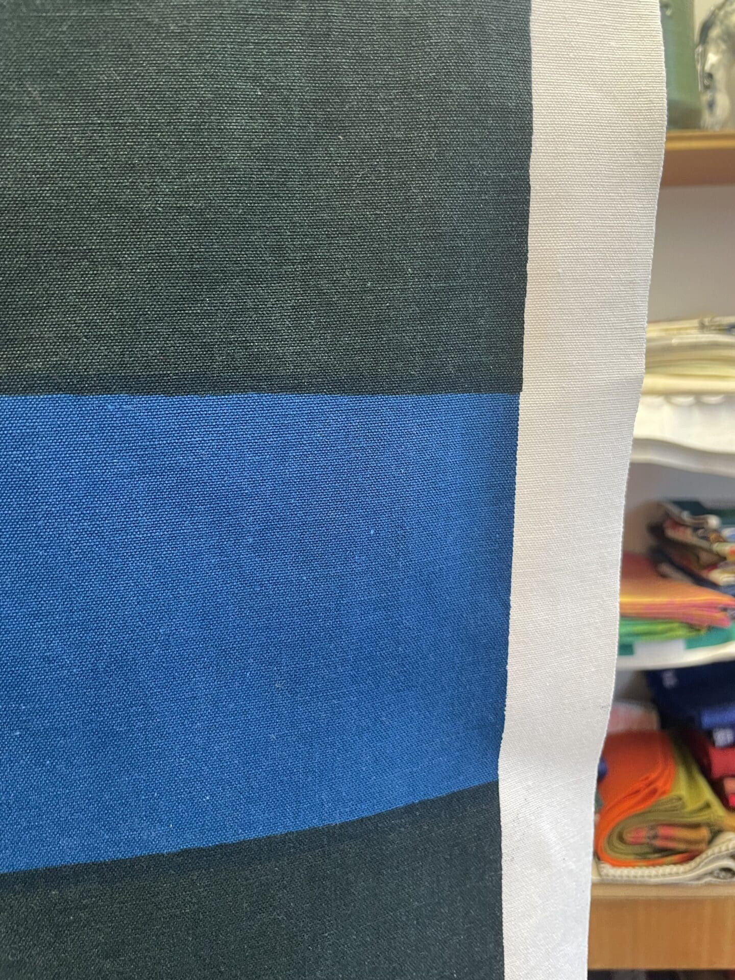 Marimekko Tablecloth Galleria 135x188cm Vuokko Nurmesniemi. Good condition, hand printed. Thick cotton. No text at the side.