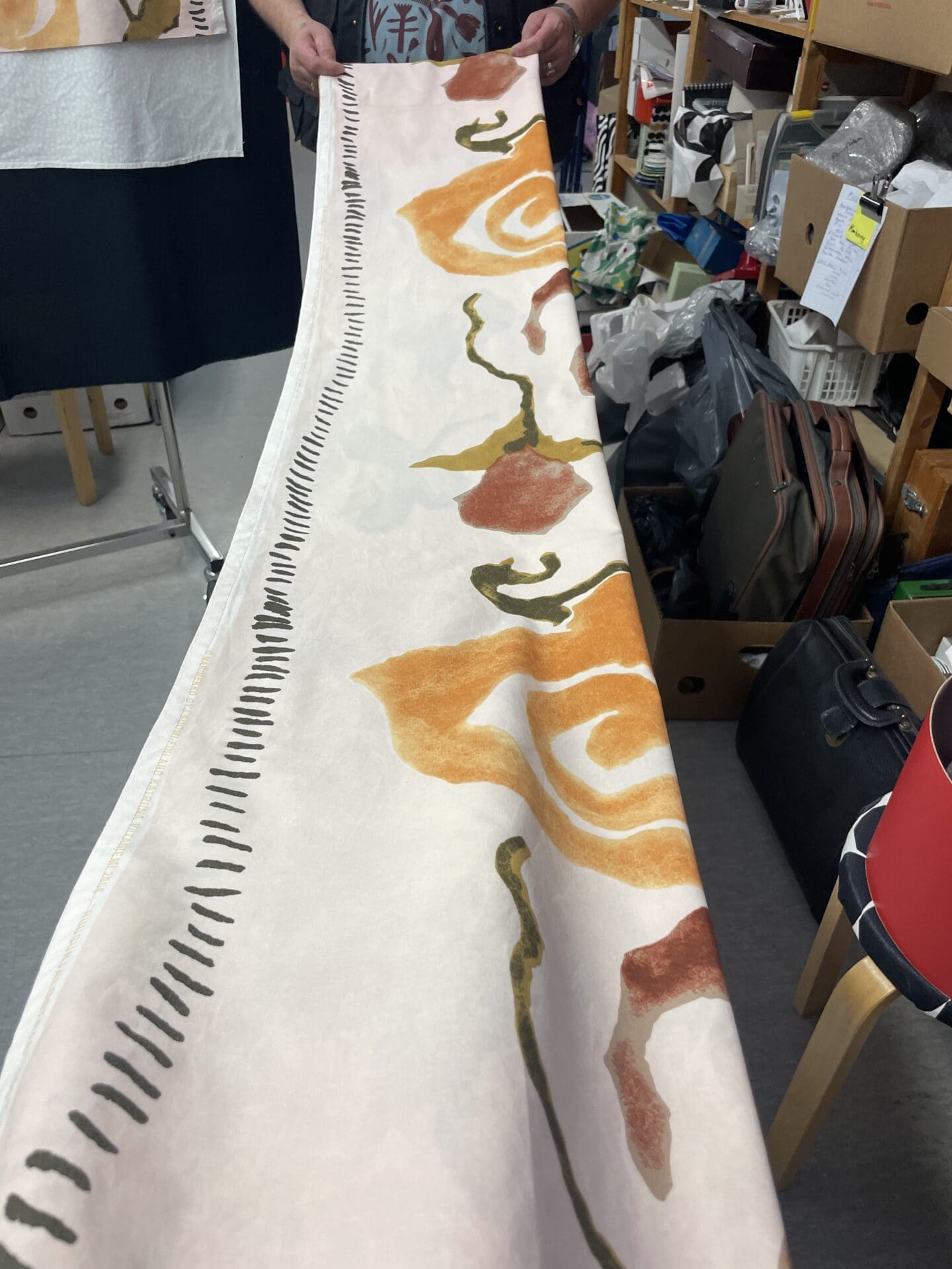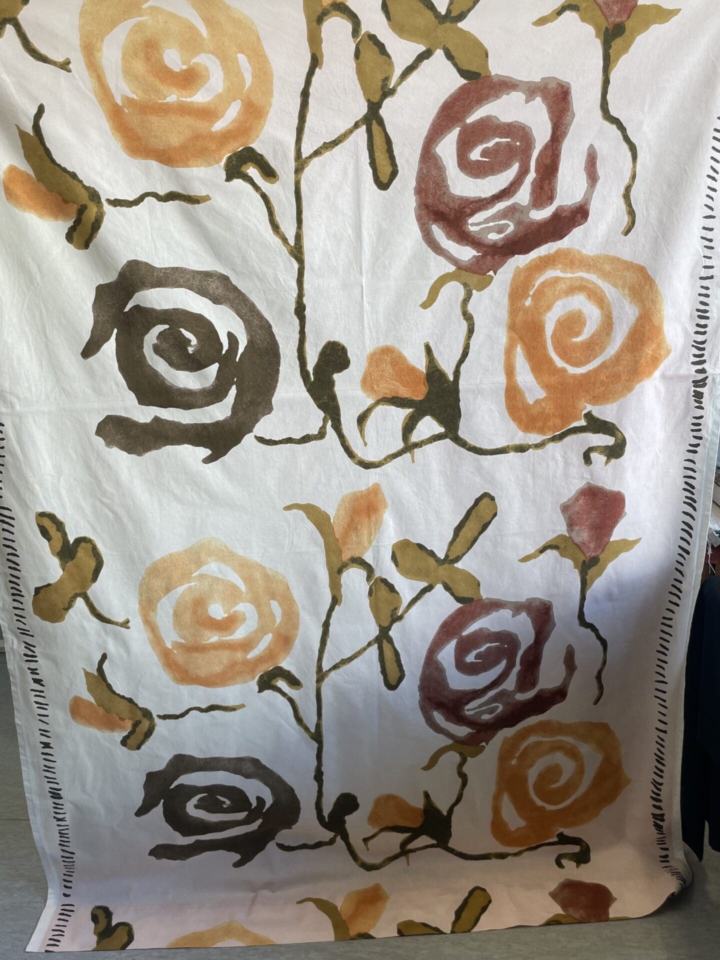 Marimekko Curtain Ruusunjalostaja apricot 141x196cm. Some wear in color, cotton. Designer Katriina Viitaniemi in 2006.