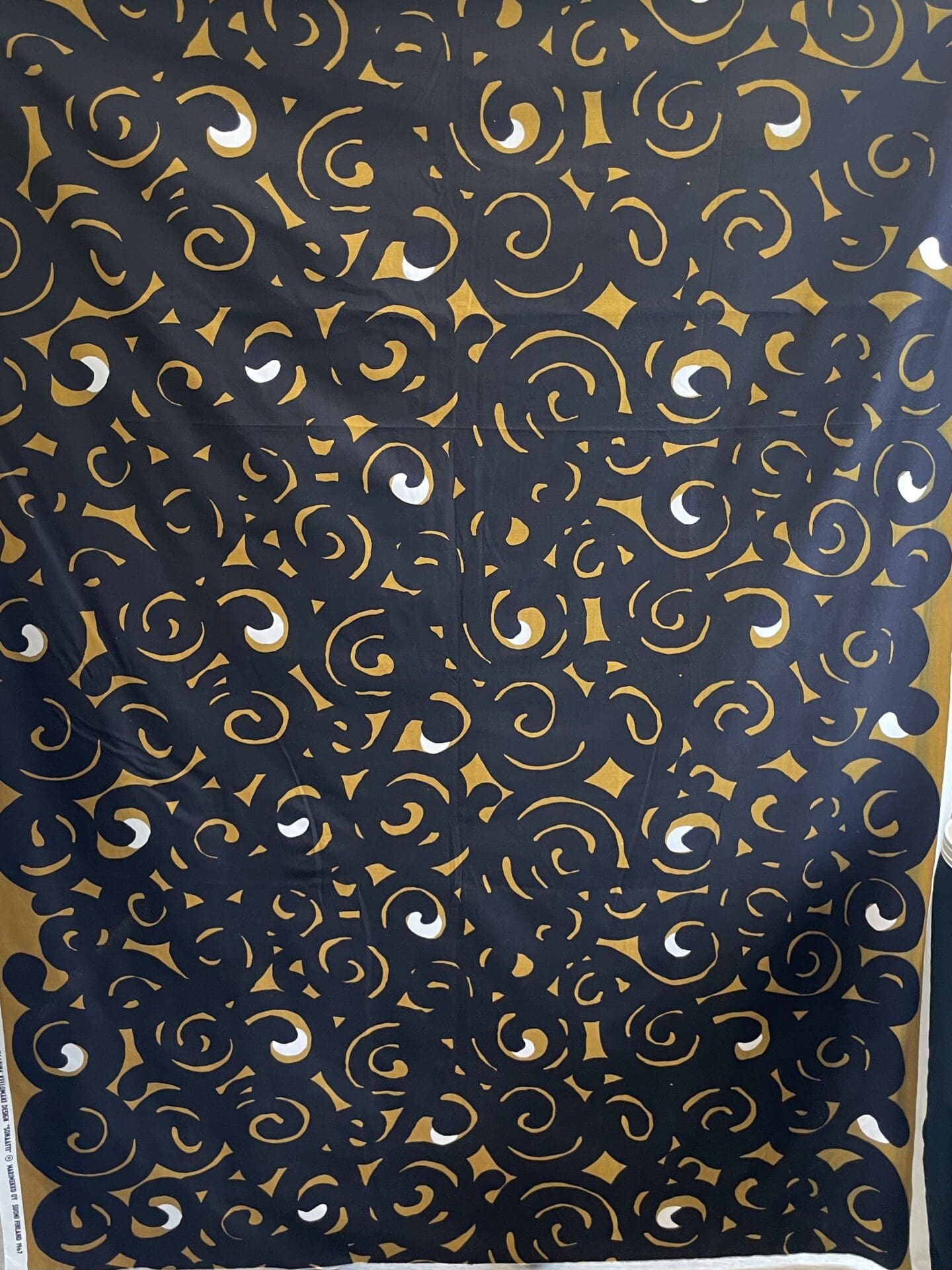 Marimekko vintage fabric Sonaatti 140x250cm Kaarina Kellomäki. Cotton. At the other side some printing error. Otherwise good fabric.