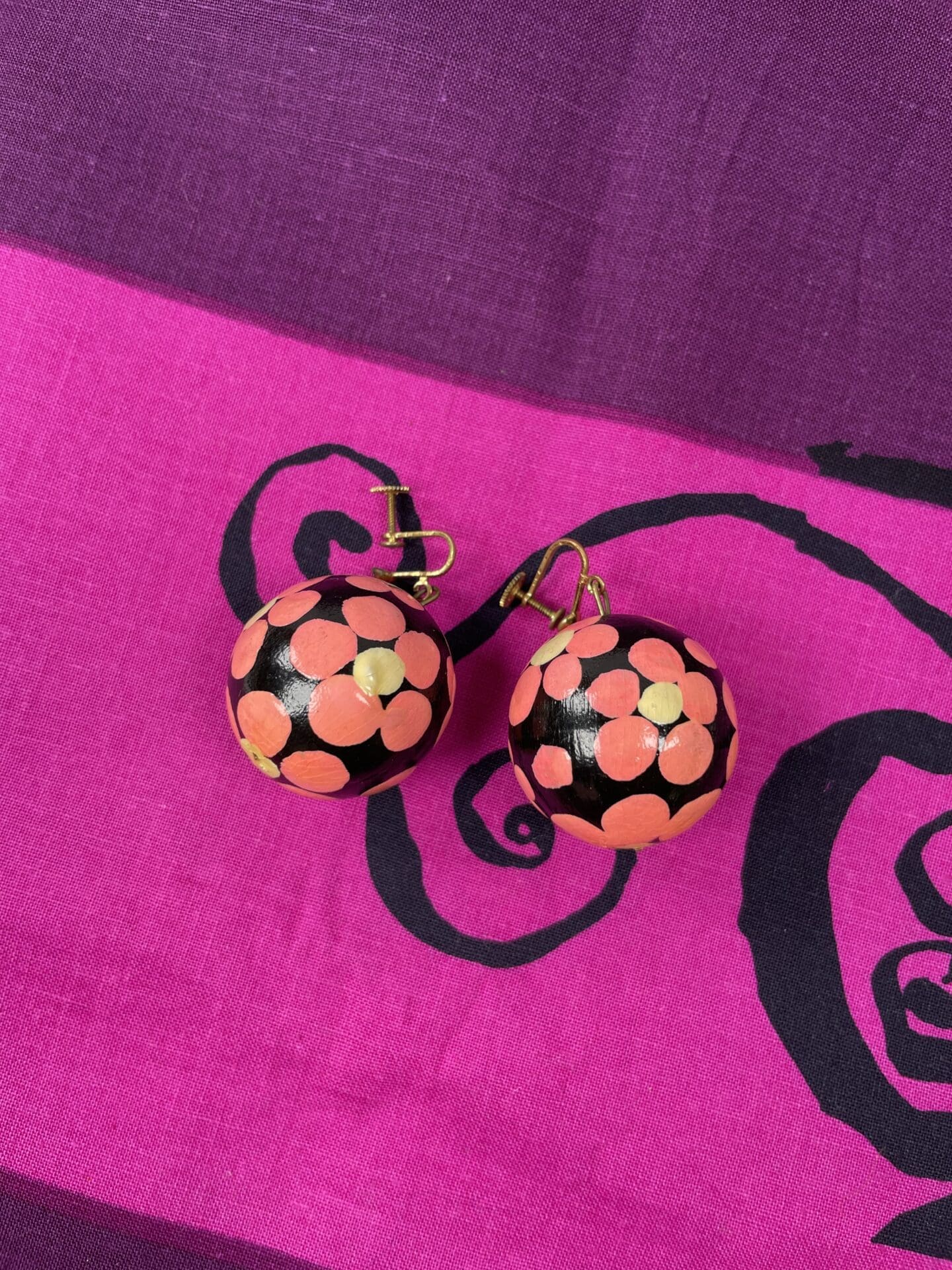 Marimekko vintage Earrings 1960’s 30mm.  Handpainted by Rita Salo (Hietakari). Very rare!!