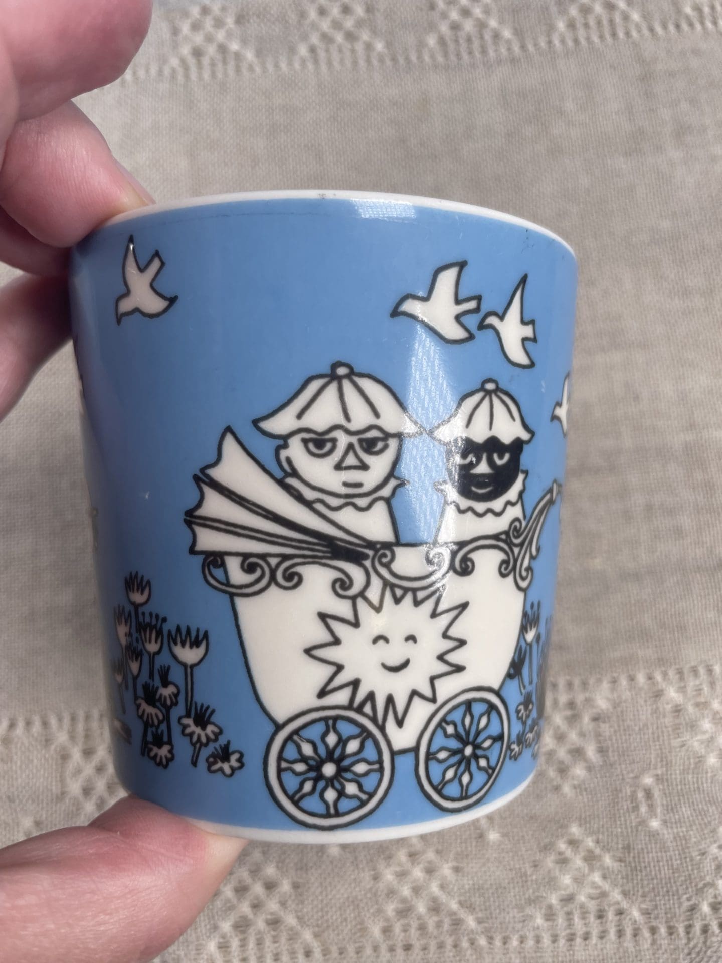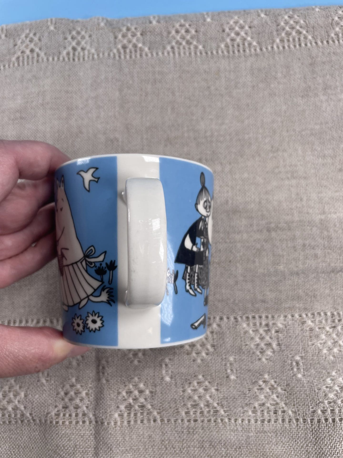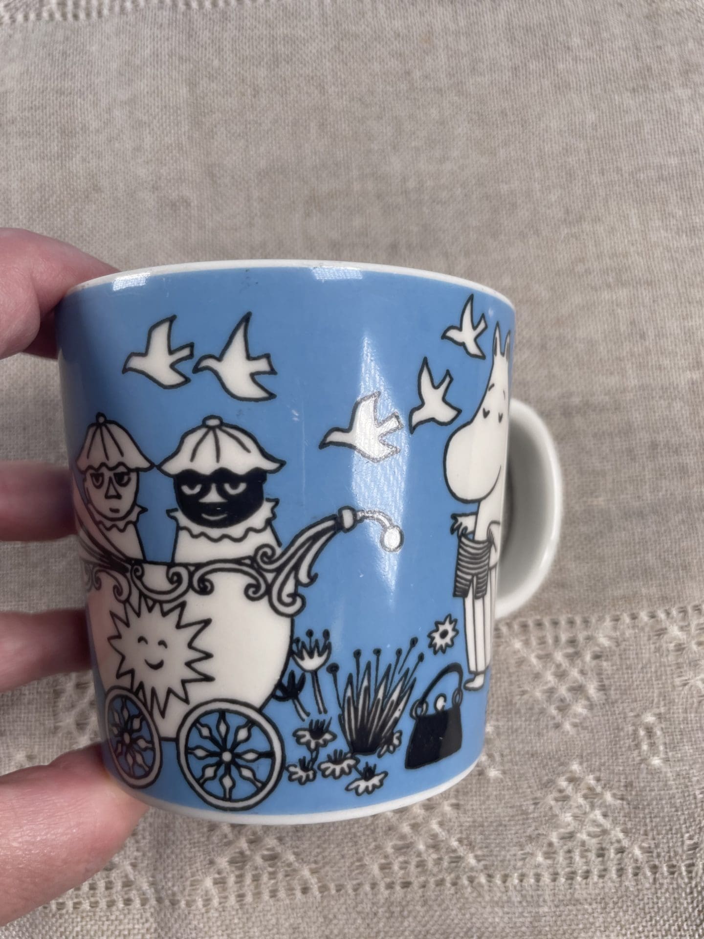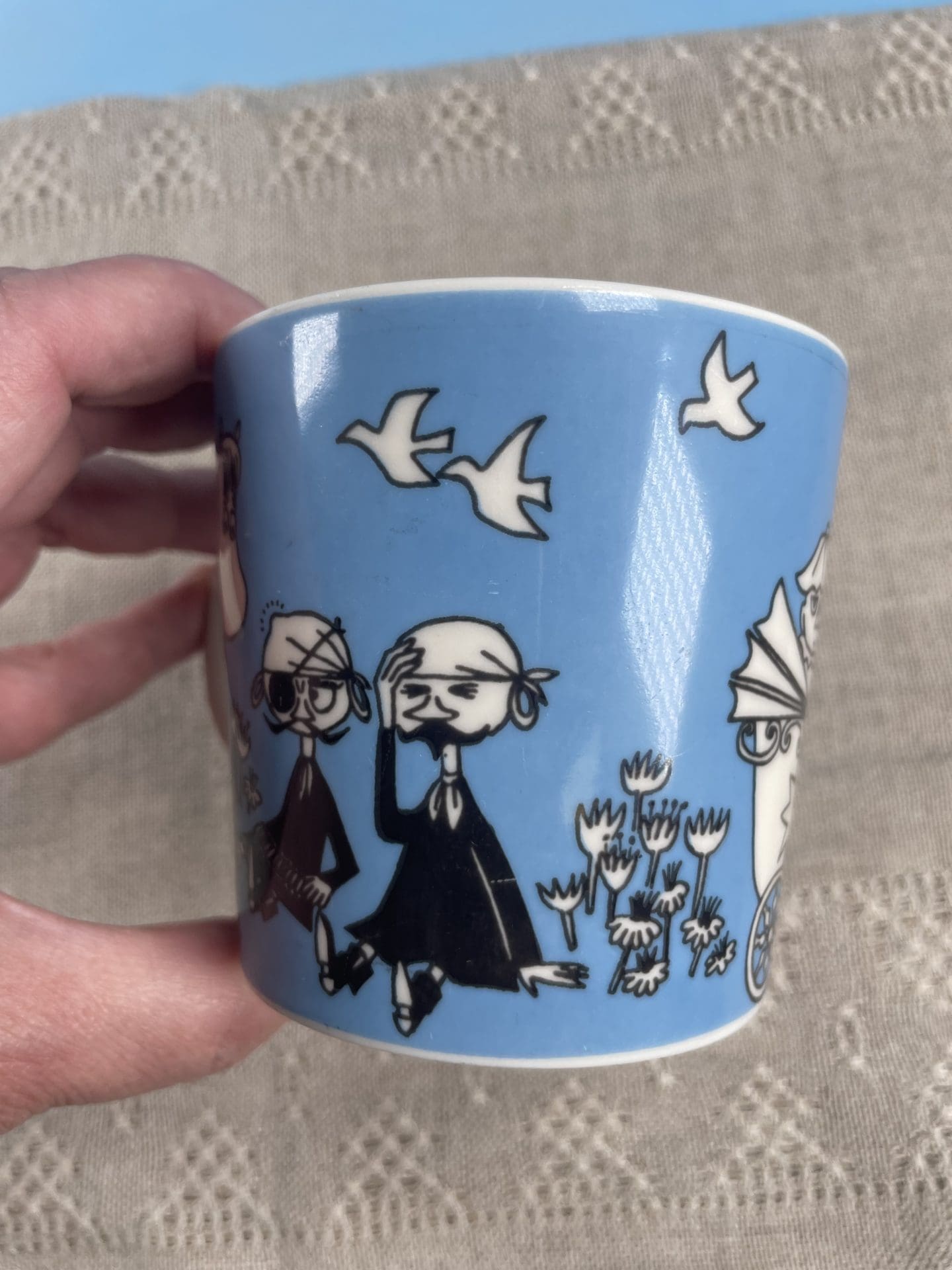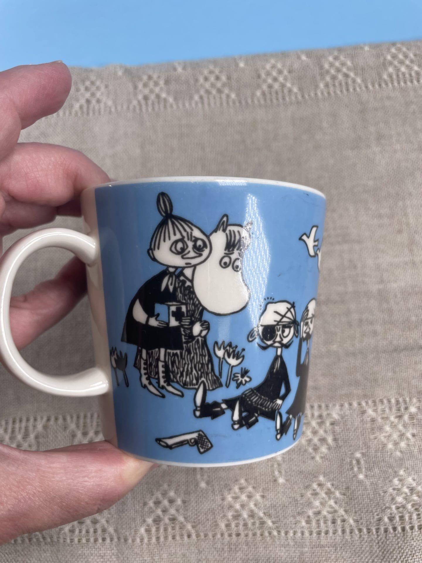 Moomin mug Peace 3dl. Little wear in pattern, pls see photos. Was in production 1996-2002.