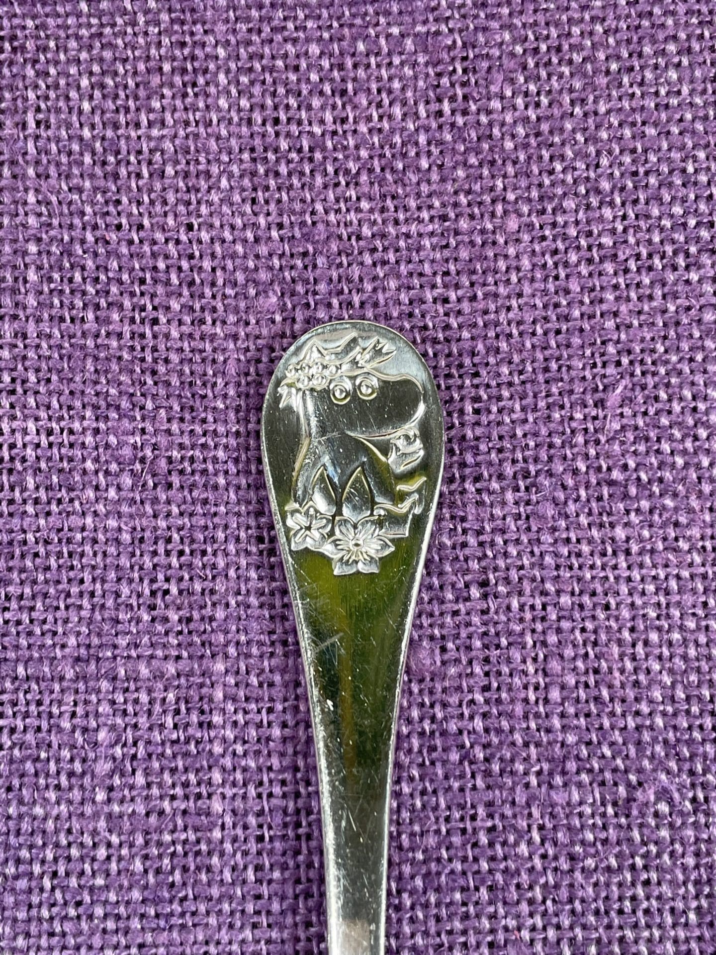 Moomin spoon Picnic. Some scratches. Length 16,2cm. Was in production 1990-94.