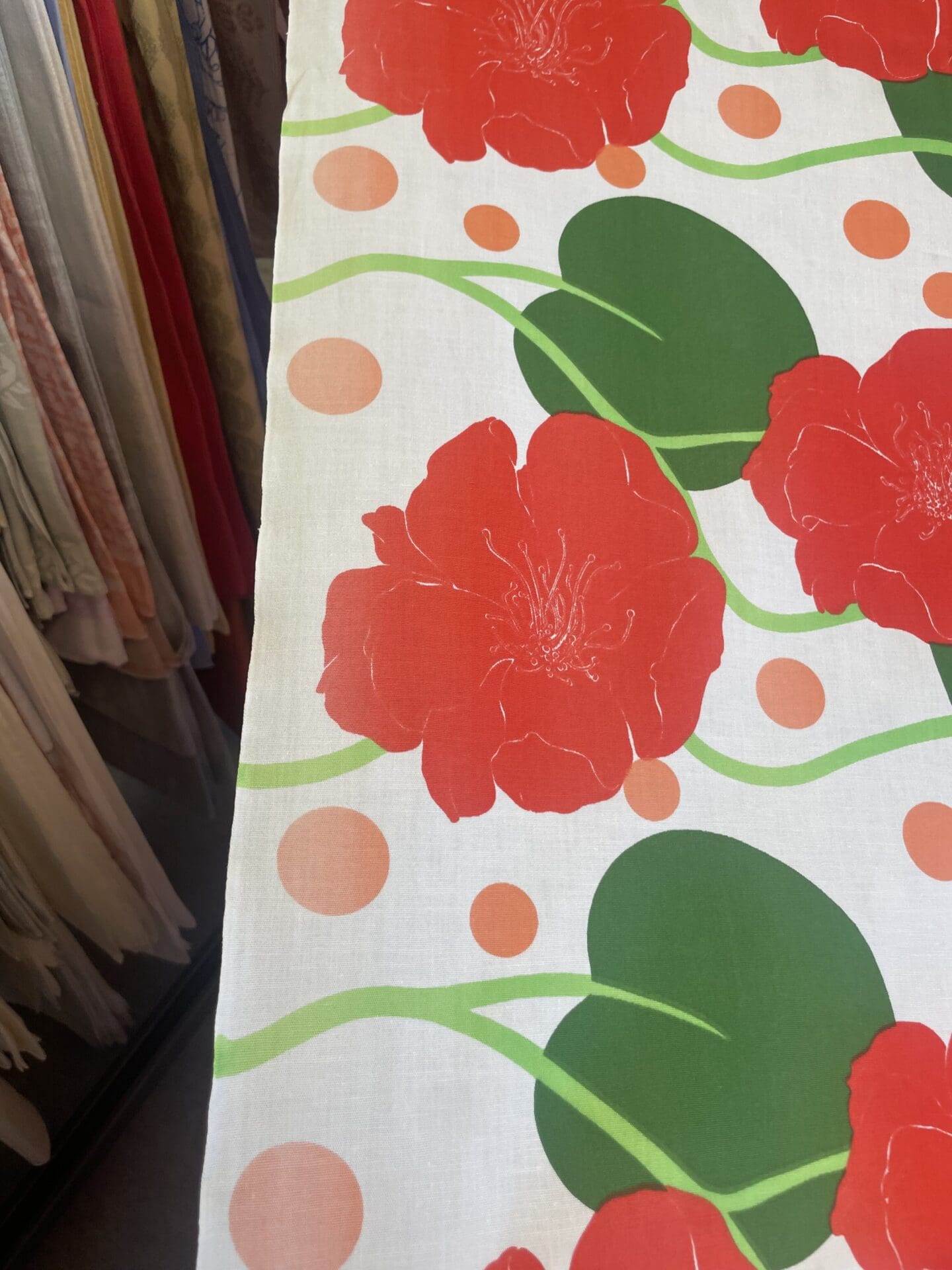 Retro Curtain Red Flowers 133x223cm. Little wear in color. Cotton.