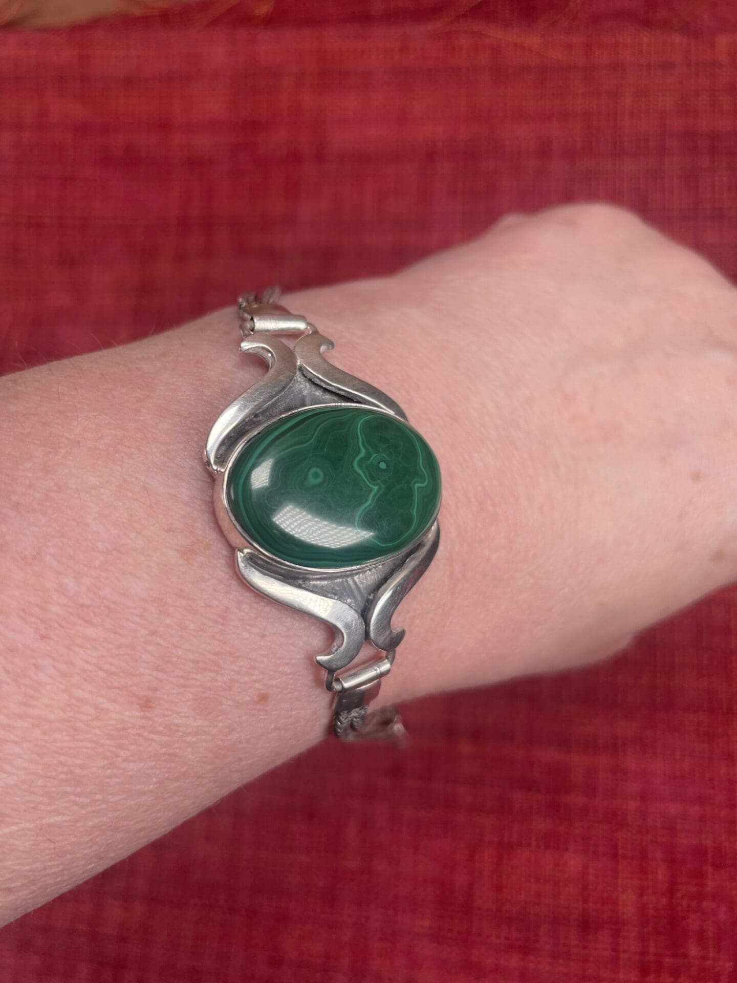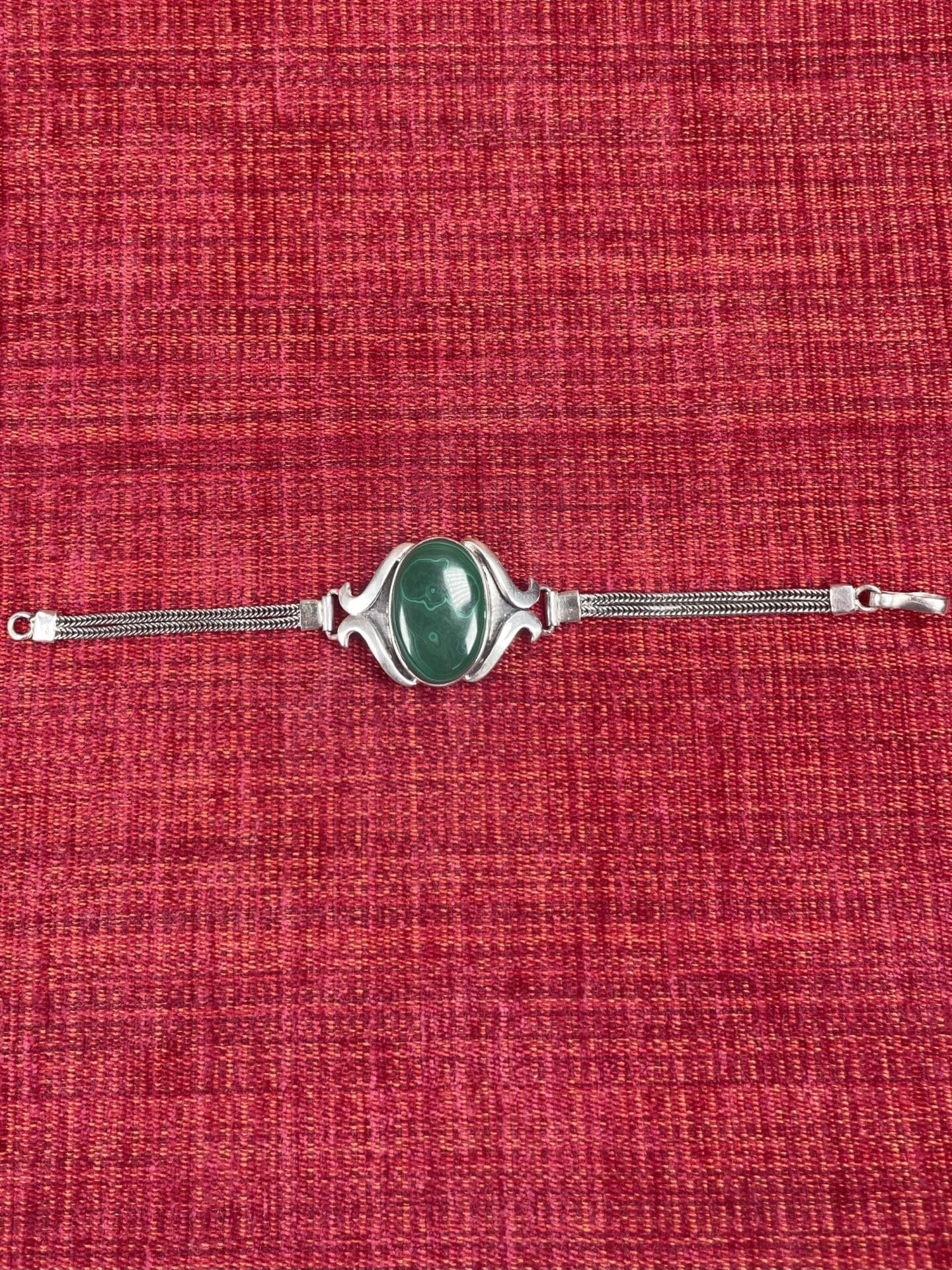 Silver Bracelet Malachite stone 17,5cm. Good condition. 925 silver.