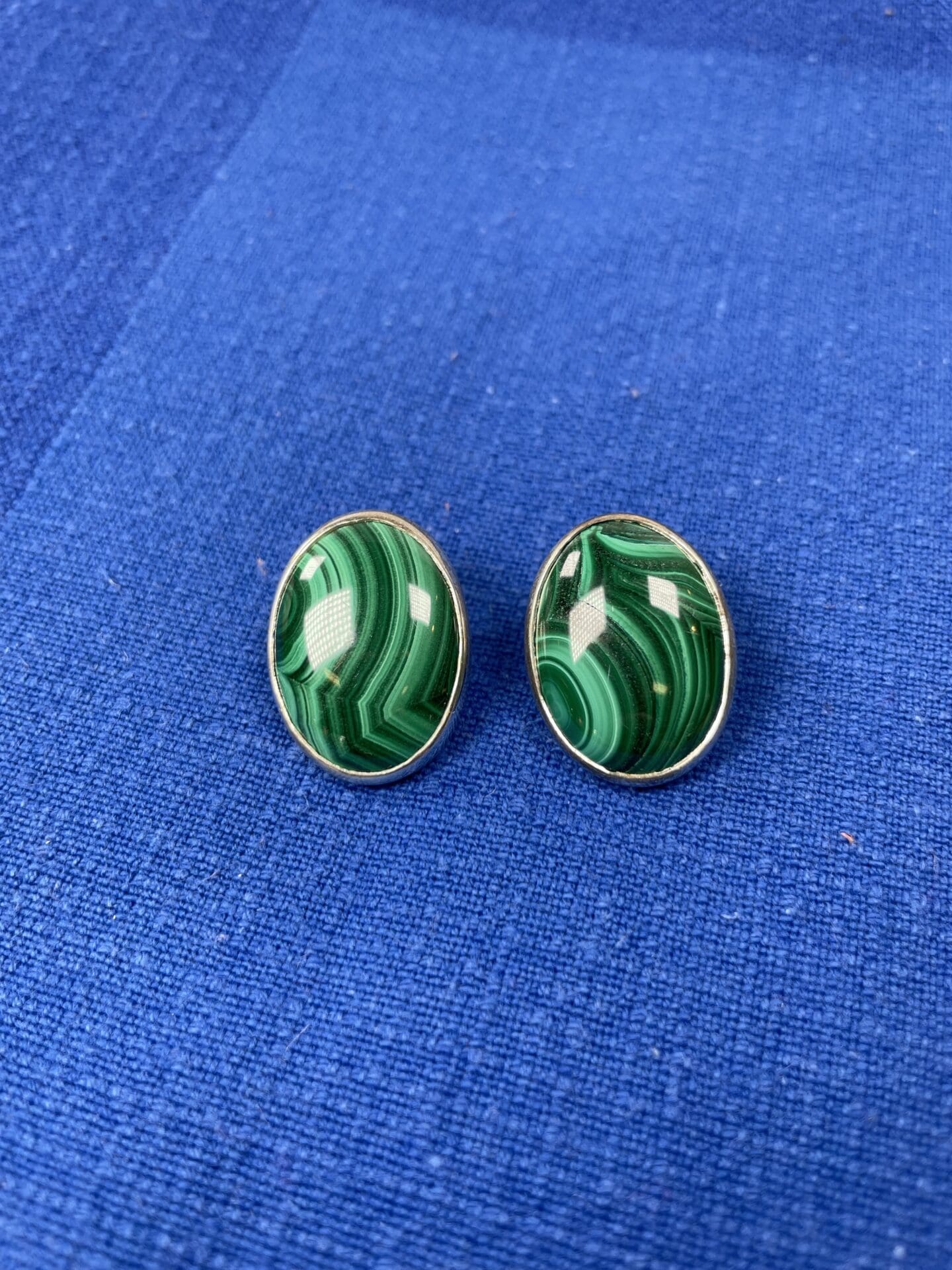 Silver Earrings with malachite stone 20x25mm. Good condition. From 1998.