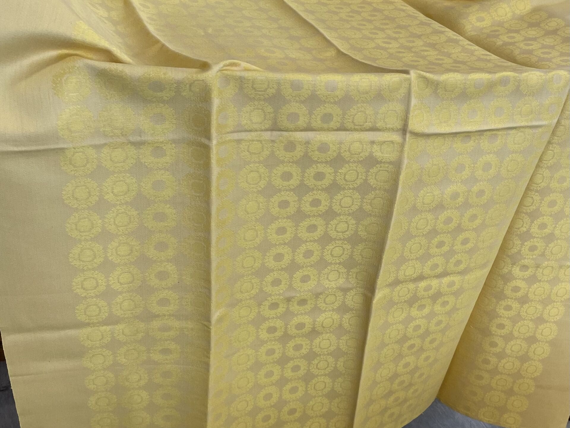Tampella Calendula Tablecloth 100x125cm yellow Dora Jung. Good condition, half linen. Was in production 1964-74.
