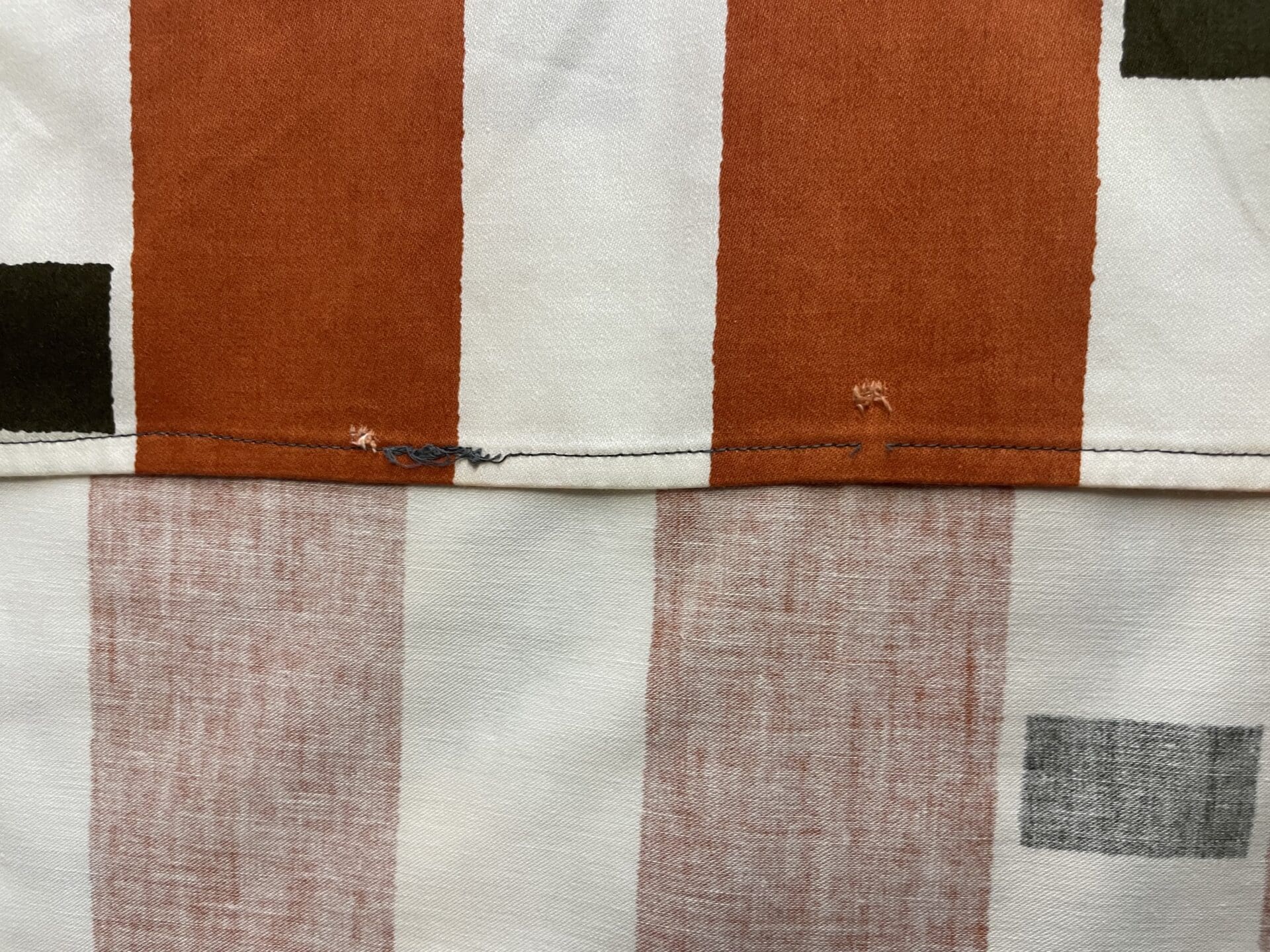 Tampella Curtain Stripes and Squares 131x168cm. Little color defect, and at the top some wear. Cotton satine.