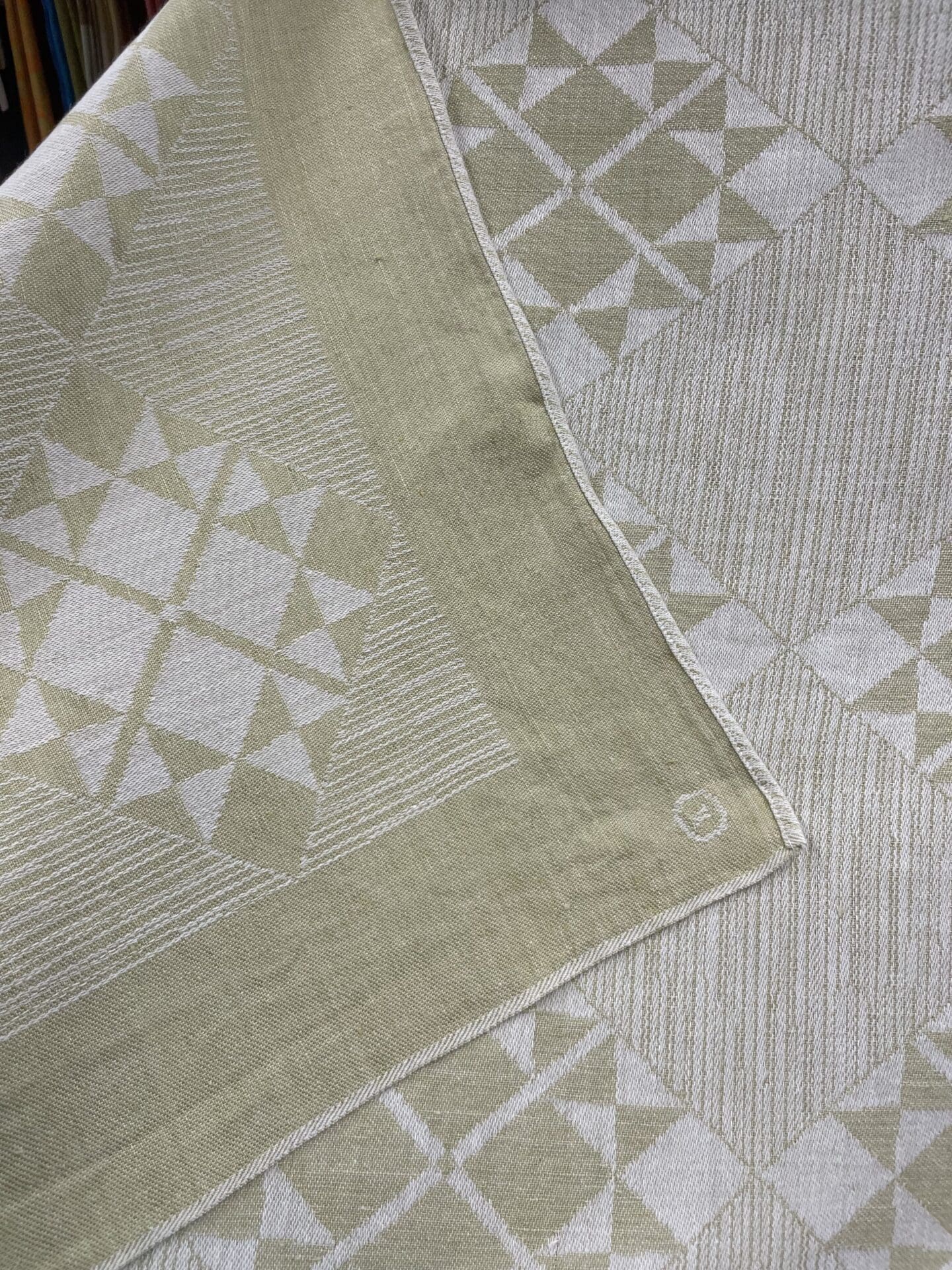 Tampella Damast Tablecloth Modell 443 130x120cm. Half linen. Was in production during 1959-64. Designer unknown.