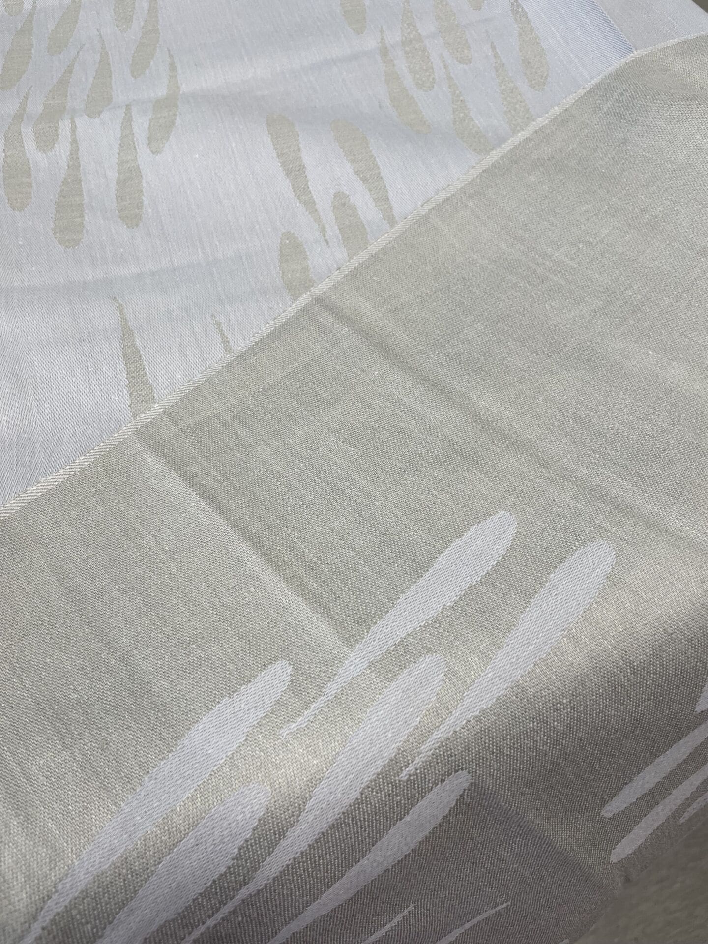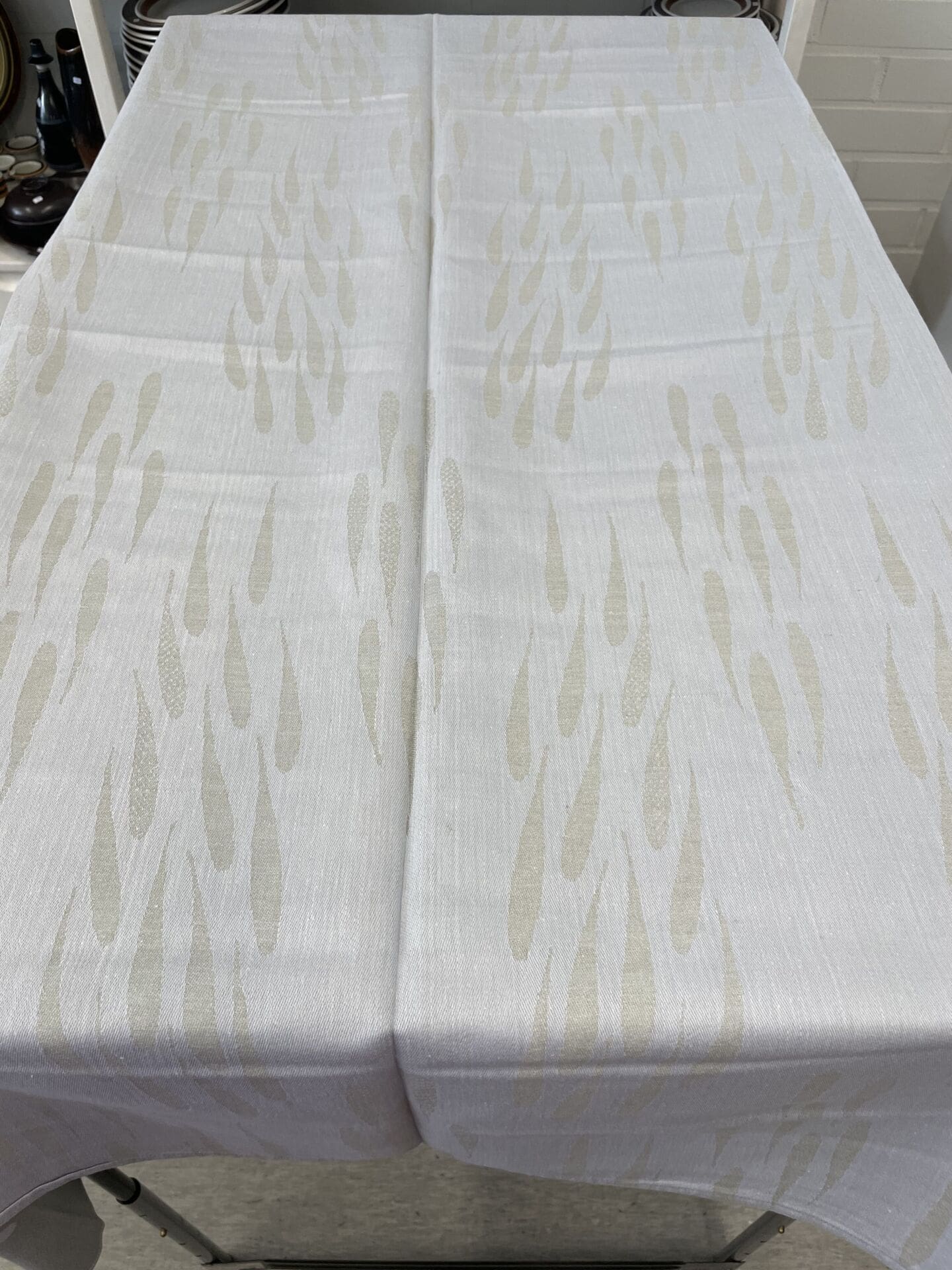 Tampella Kalaparvi Tablecloth 135x135cm Dora Jung. Blue grey. Good condition. Half linen. Was in production 1971-79.