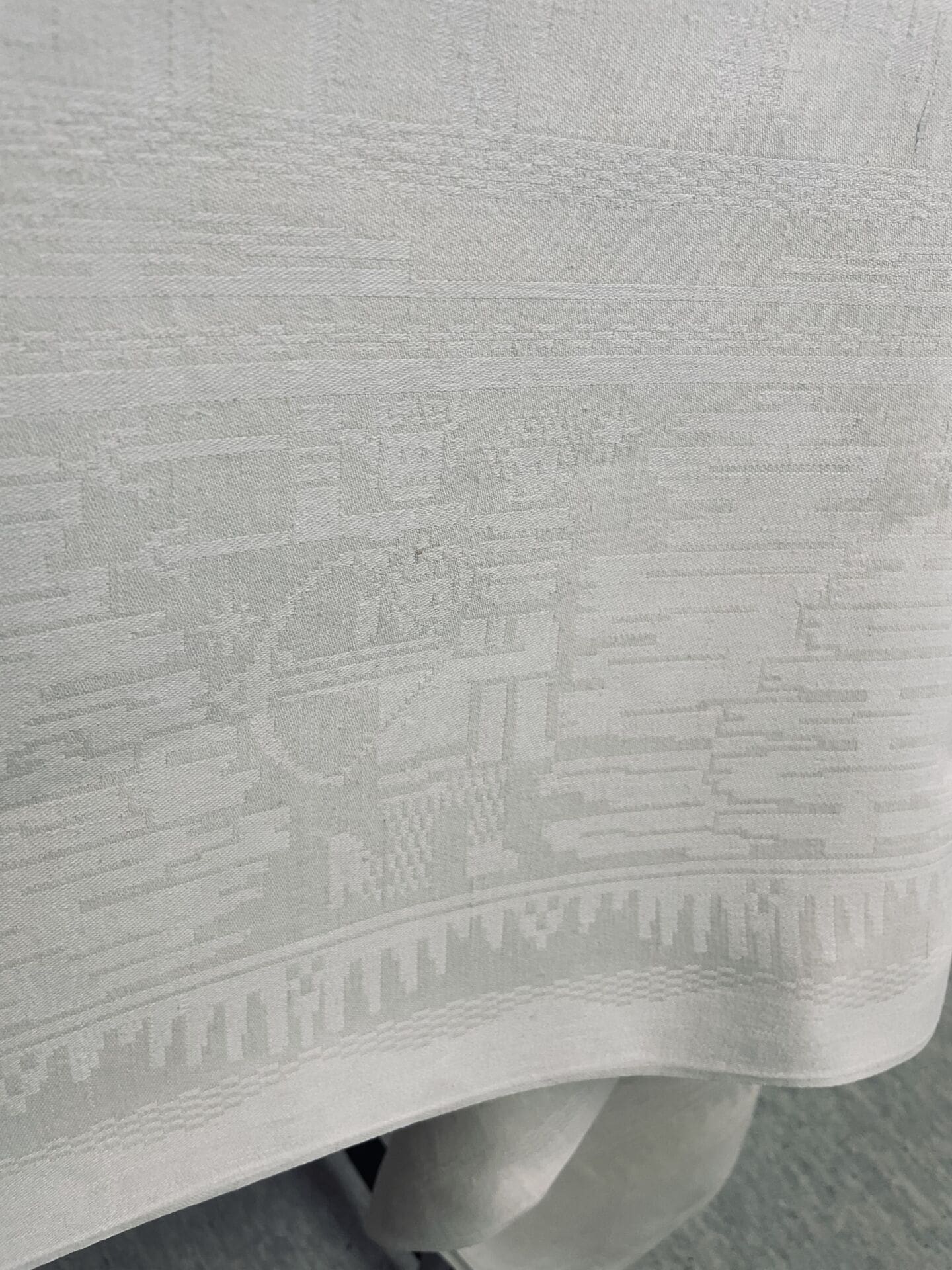 Tampella Karhunjahti Tablecloth 151x240cm Greta Skogster-Lehtinen. At the side some dark stain. Linen. Was in production during 1930-66.